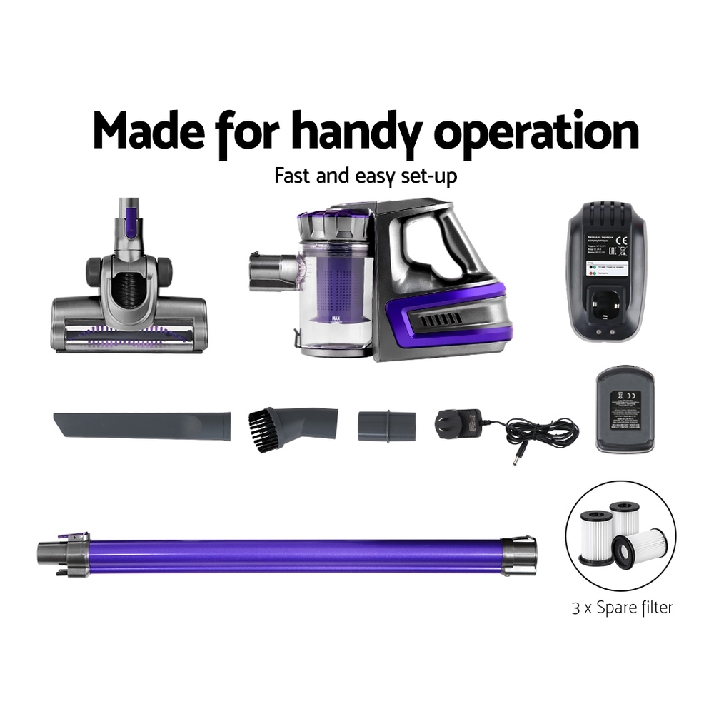 Devanti Stick Vacuum Cleaner Cordless HEPA Filter Purple