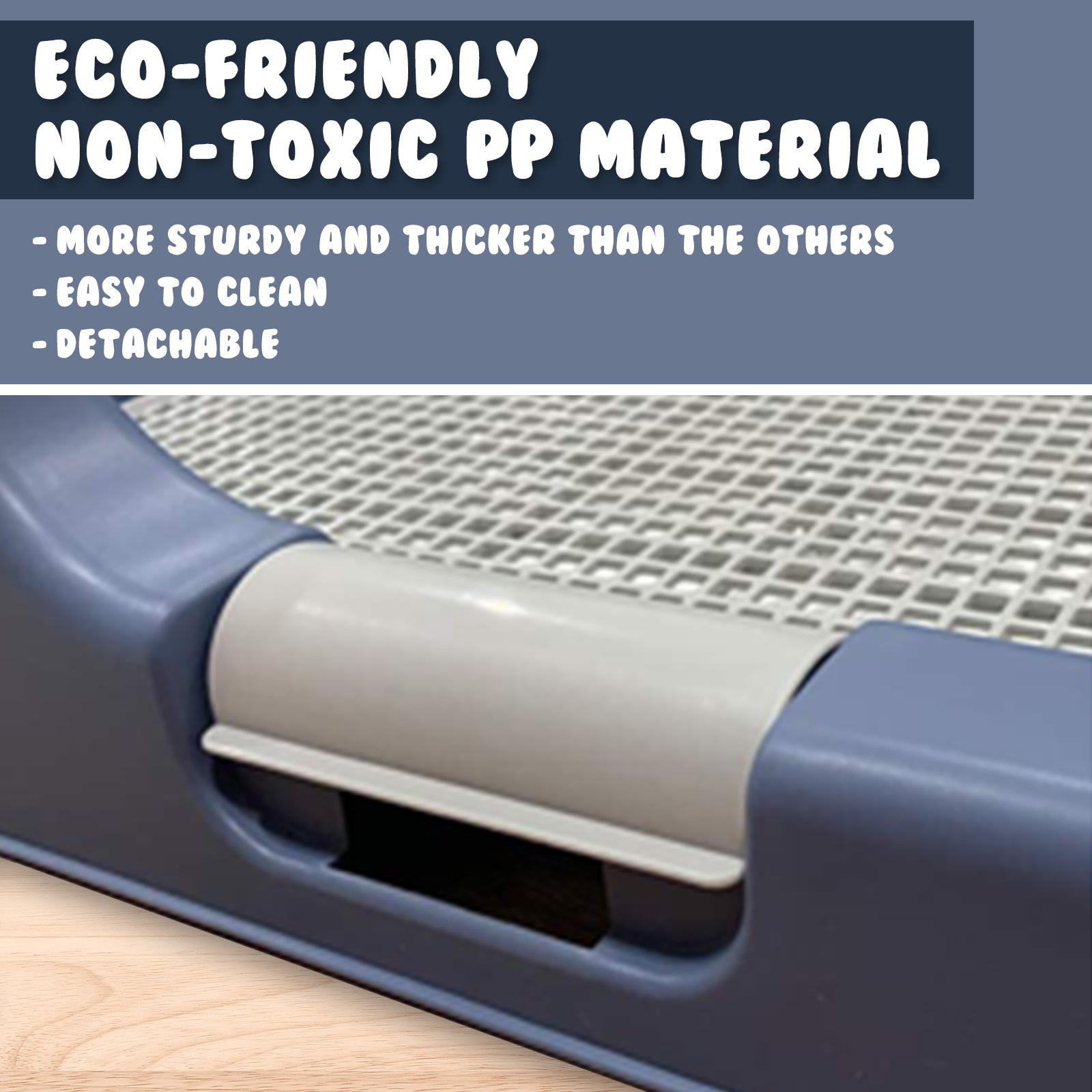 PS KOREA Dog Potty Tray is designed to keep pee where it belongs and to keep your furry companion's potty area sanitary. This plastic tray features a leak-proof design. The perforated grate/mesh panel allows urine to carry to the tray underneath and prevents pups from tearing up the potty-training pad inside. They will also love using the potty tray as an indoor toilet. * Training pad/Grass mat is not included in this purchase.