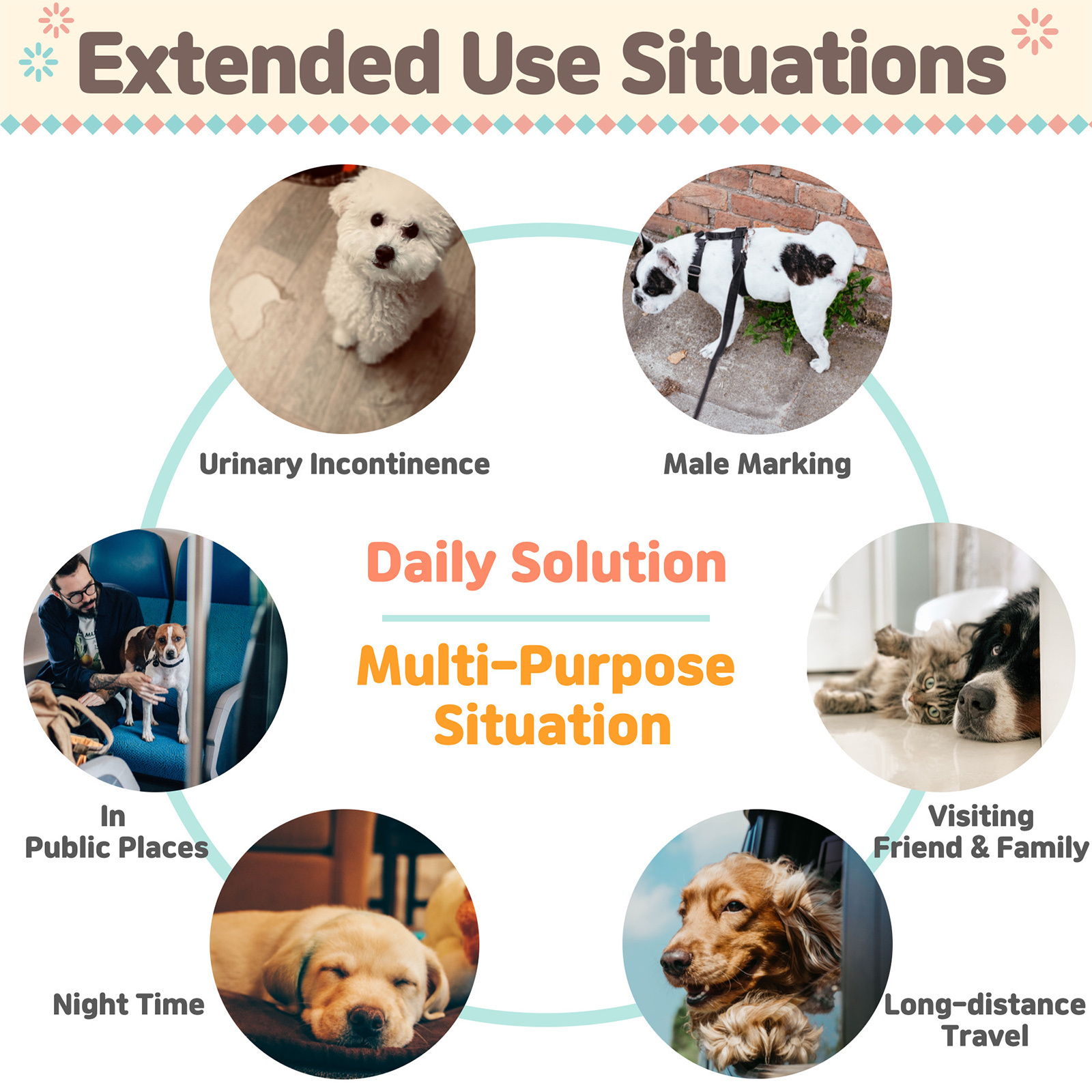 VALUE SET: This Premium Value Set is a bundle of Male Dog Wrap (1 unit) and Adhesive Dog Diaper Liner Booster Pads (10 counts). This belly band MUST be used with a PawPang booster pad to be effective. This set work great for male marking, urinary incontinence, excitable urination and overnight leaks, etc.