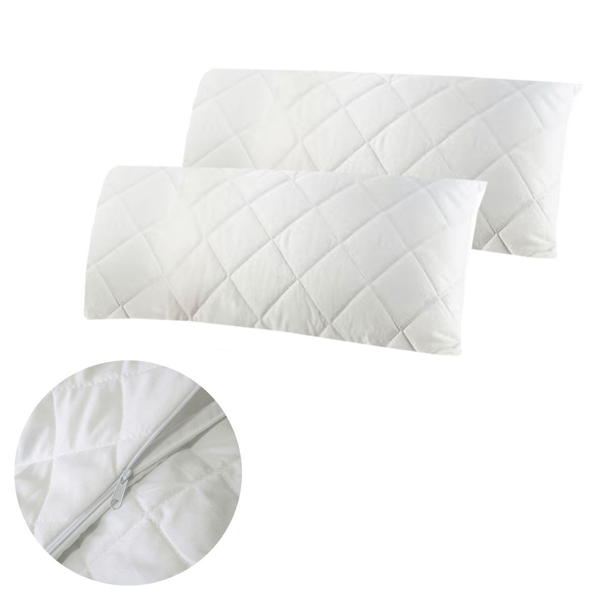 Quilted pillow protector. Filled with 100GSM resilient new hollow polyester. This Pair of King Quilted Pillow Protectors 52 x 92 cm by Easyrest is durable and long lasting. Perfect for commercial use and easy care. Finished with diamond patterned quilting and it is suitable for all seasons.