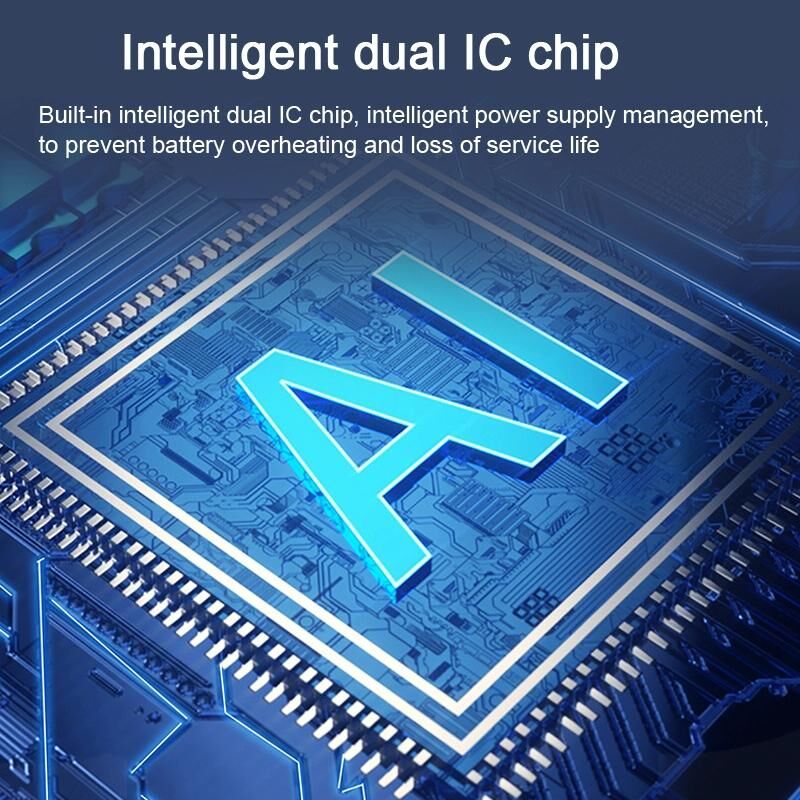 • Built-in intelligent dual IC chip, intelligent power supply management, to prevent battery overheating and loss of service life