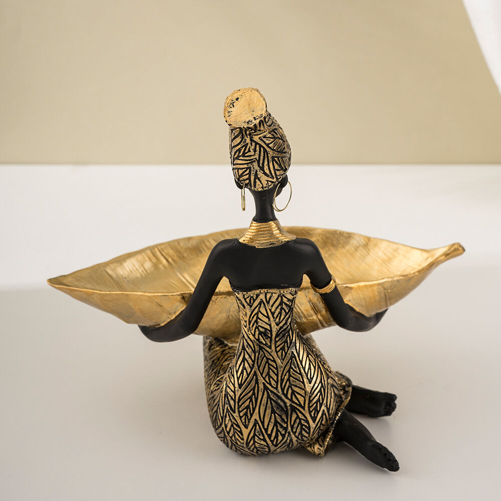 - Unique Design: Features a detailed African woman holding a golden leaf-shaped tray, symbolizing culture and grace.