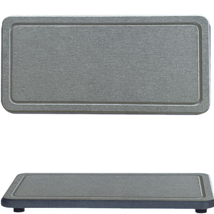 Engraved Inner Frame - Dark Grey 2-Piece Rectangular Diatomaceous Earth Coaster Set - Absorbent Grooved Mat for Sink and Bathroom