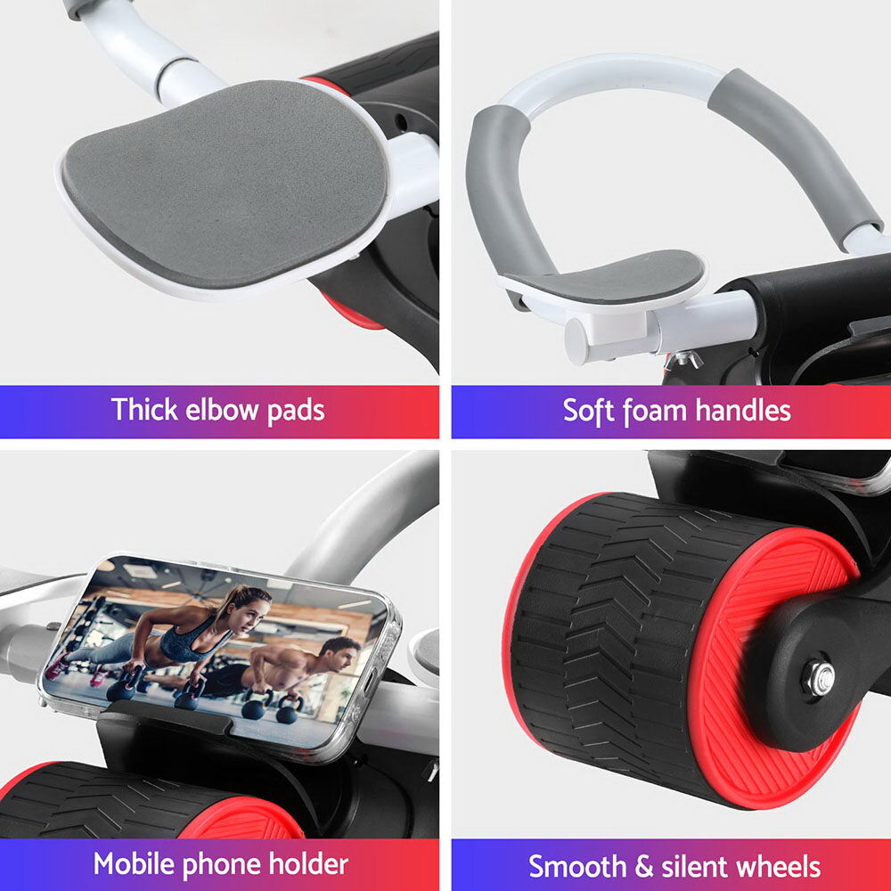The Everfit Ab Roller is a must-have fitness tool for anyone looking to strengthen their core muscles. With its automatic rebound wheel, you can easily roll forward and backward without any effort, making your workout more efficient and effective. The stable triangular design ensures stability and balance, allowing you to focus on your form and get the most out of your abdominal exercises. Designed for comfort and safety, the ab roller features a thick foam grip that provides a secure and comfortable hold during your workout sessions. The multi-layer non-slip material on the wheel ensures a firm grip on any surface, preventing any accidental slips or slides. A convenient mobile phone holder can keep you entertained or help to monitor your fitness goals. Additionally, the smooth and silent roller allows for seamless and quiet movements, so you can exercise without disturbing others. Plus, its lightweight and portable design makes it easy to take with you wherever you go, so you can stay on track with your fitness goals no matter where you are. Exercise freely and easily with the Everfit Ab Roller.
