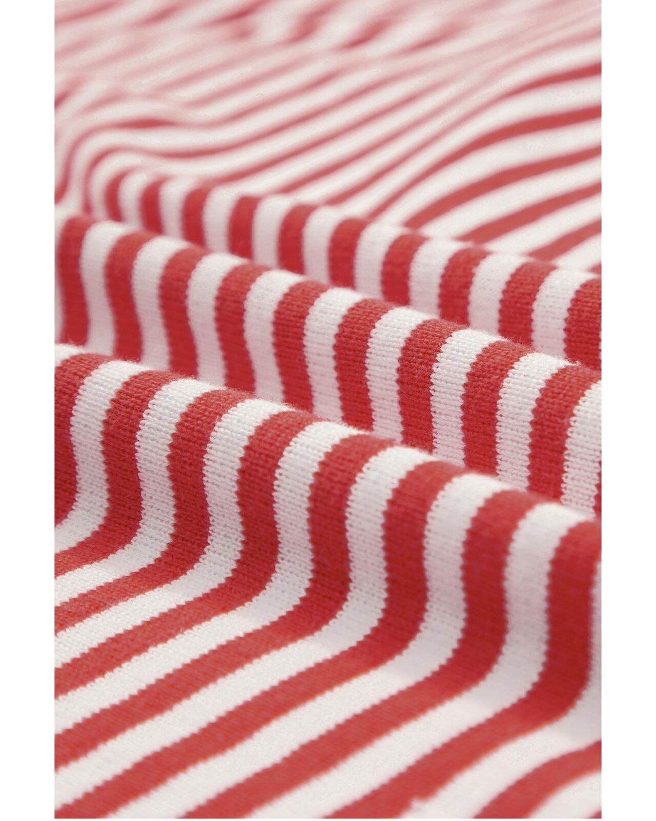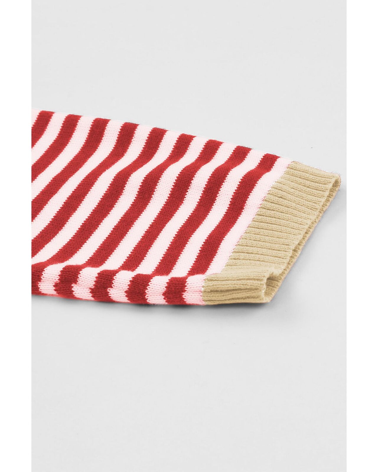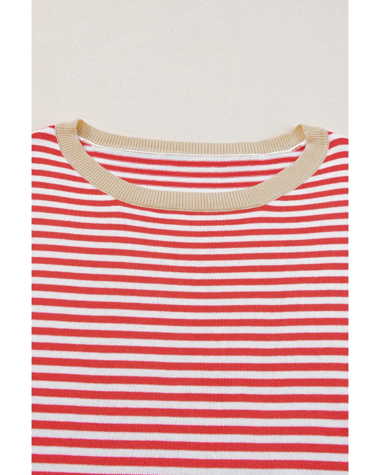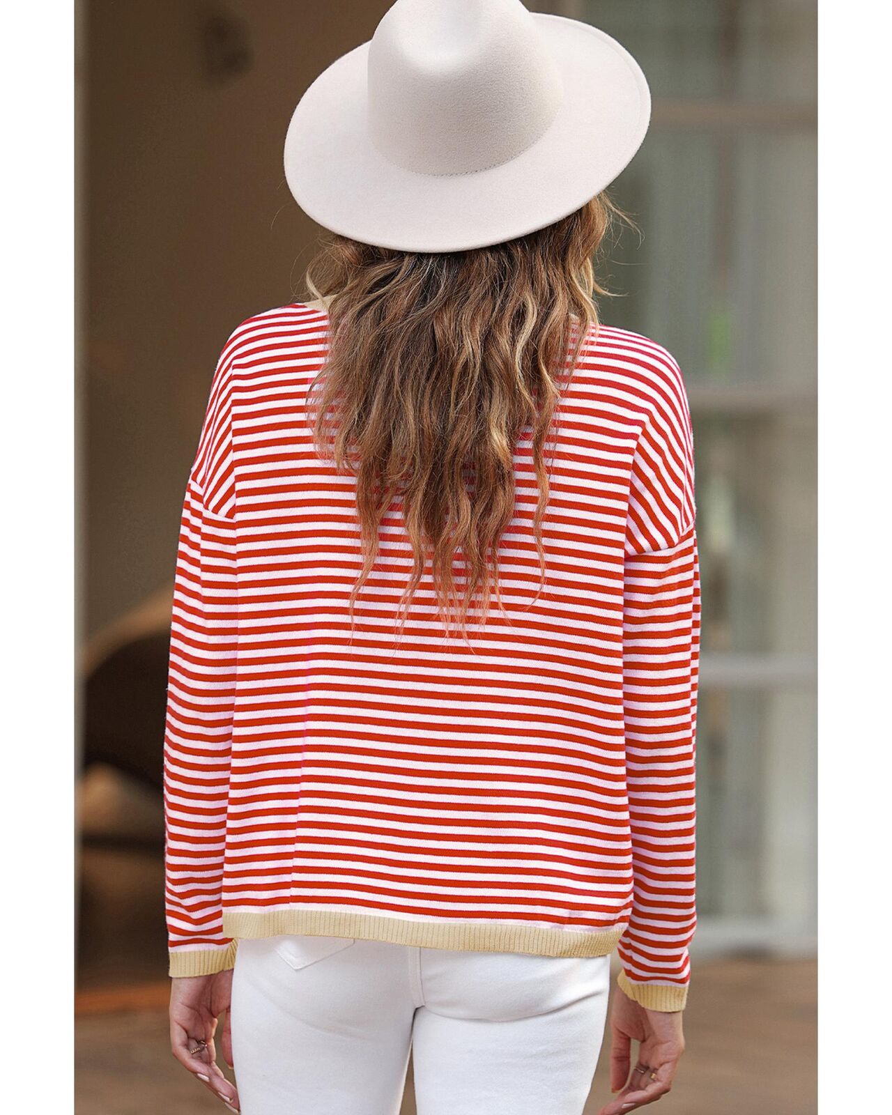 • Fiery Red Contrast Trimmed Striped Drop Shoulder Sweater