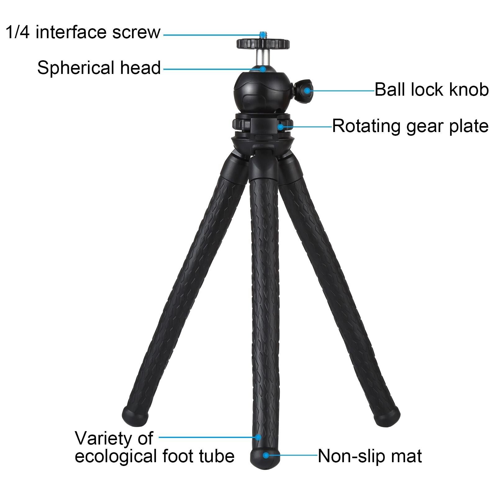 Flexible Mini Octopus Tripod with Ball Head and Phone Clamp for Slr Cameras Gopro and Cellphones