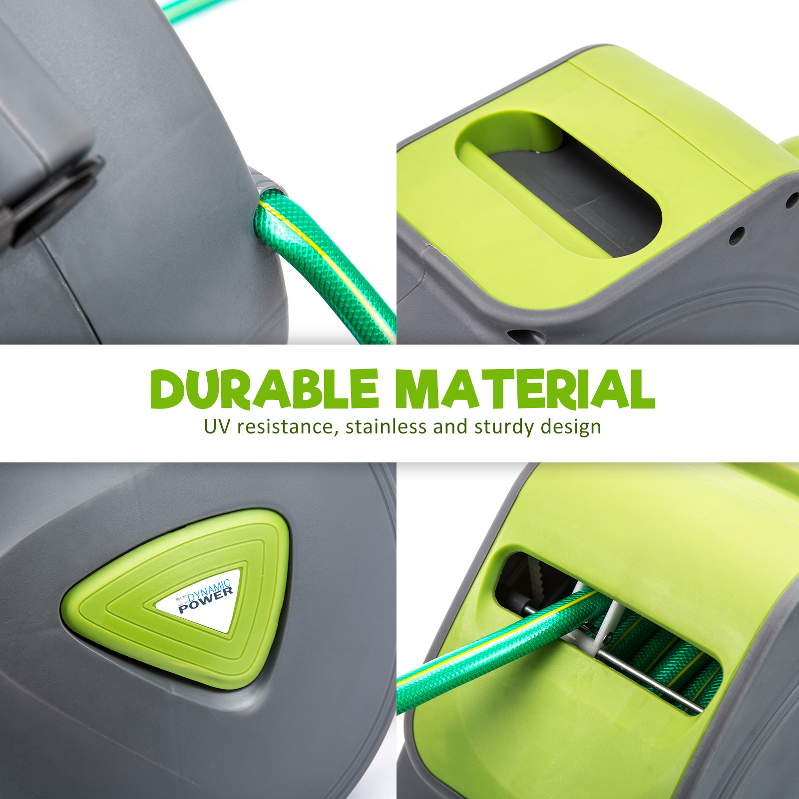 With the Dynamic Power Retractable Hose Reel, watering the garden, washing the car or showering the pet is now reel-ly easy and convenient. Get yours today.
