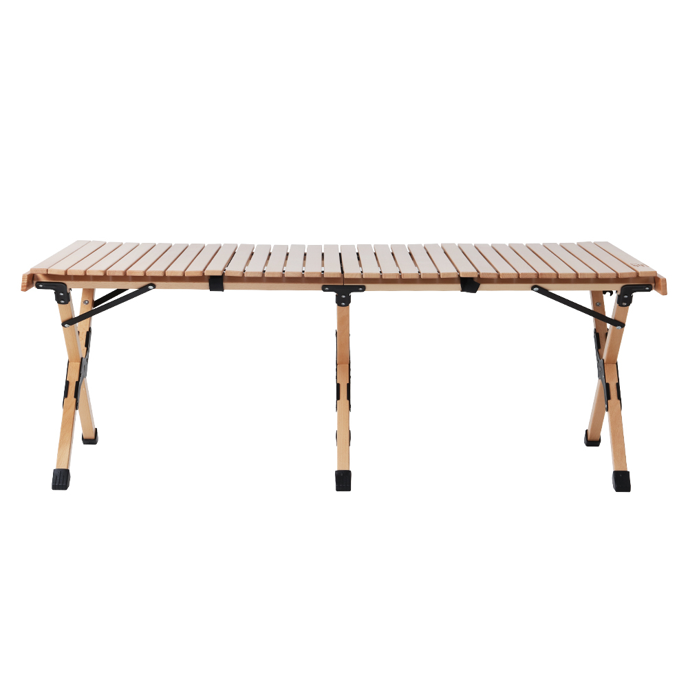 Get ready for your next outdoor trip with our Gardeon outdoor folding camping table. Boasting a perfect balance of functionality and comfort, this outdoor folding table makes a great camping accessory. Summer or winter, when the sun's shining bright, pull out this camping table on your patio, balcony, or deck for a convenient outdoor dining experience. Whether you're planning for your next camping or beach trip, our outdoor folding table is ideal for every setting. It flaunts a solid and durable beech wood construction with clear lacquer finish and heavy-duty metal hardware, and the sturdy triangle design increases its stability on various surfaces. Our outdoor folding table features an easy roll-up tabletop that can be separated from the frame for easy and convenient storage, and its lightweight design makes it easier to carry and store. It also comes with an oxford fabric carry bag. A perfect companion, our Gardeon outdoor easy roll-up folding camping table is a must purchase. Get it today.