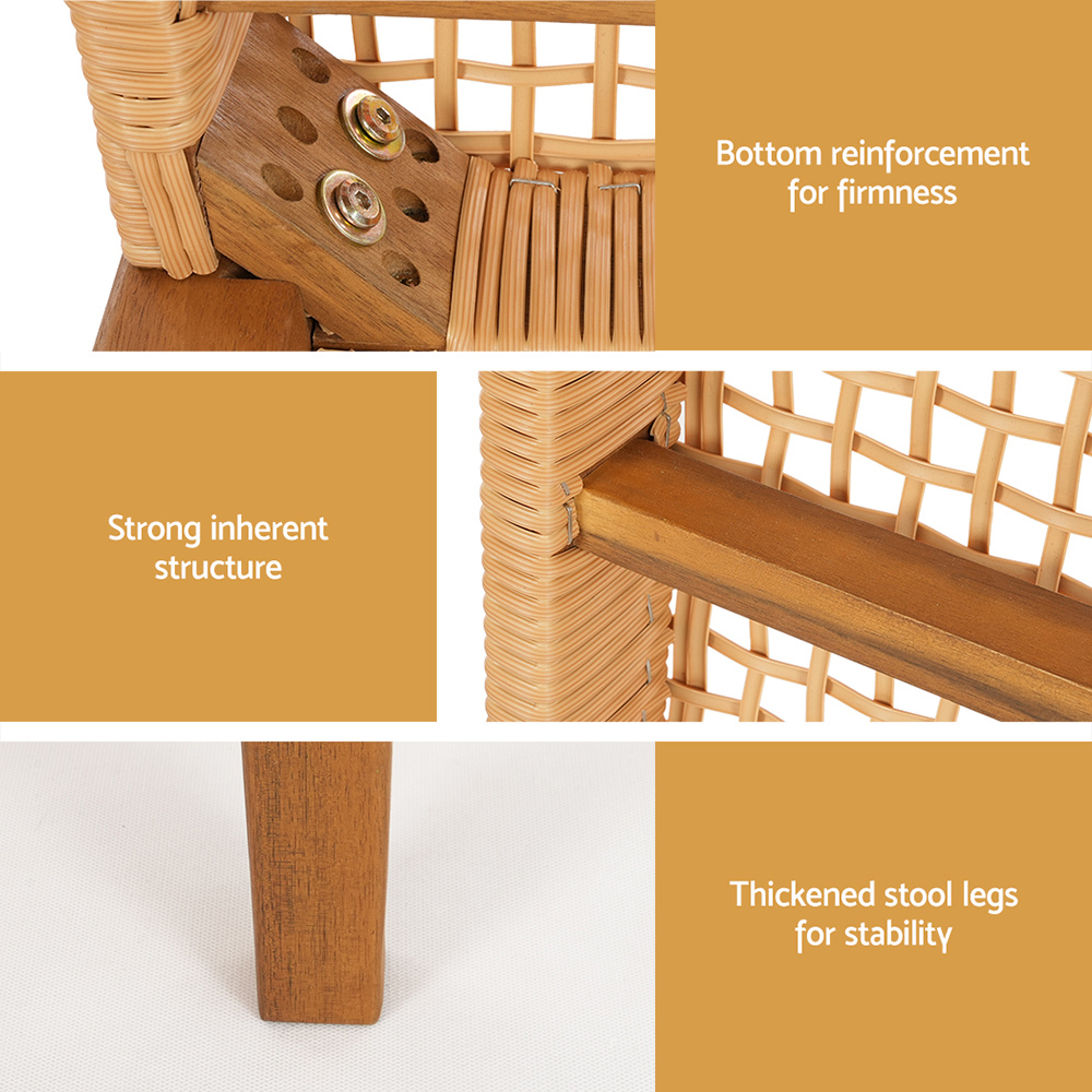 Enjoy a peaceful afternoon in the backyard with a Gardeon 2-seater Garden Bench. With a smooth Acacia wood surface and PE wicker seat, this timeless garden bench is the perfect addition to your outdoor dining area. The chair is strong, sturdy and weather resistant, so you know it will be there come rain or shine. The PE rattan seat keeps the bench well-ventilated and is simple to clean. With a reinforced bottom and thickened base legs, the bench has a weight capacity of 240kg. Use outdoors for a classic exterior look or use inside for a rustic touch to your décor. What better way to spend spring than with company outdoors on your Gardeon 2-seater Garden Bench.