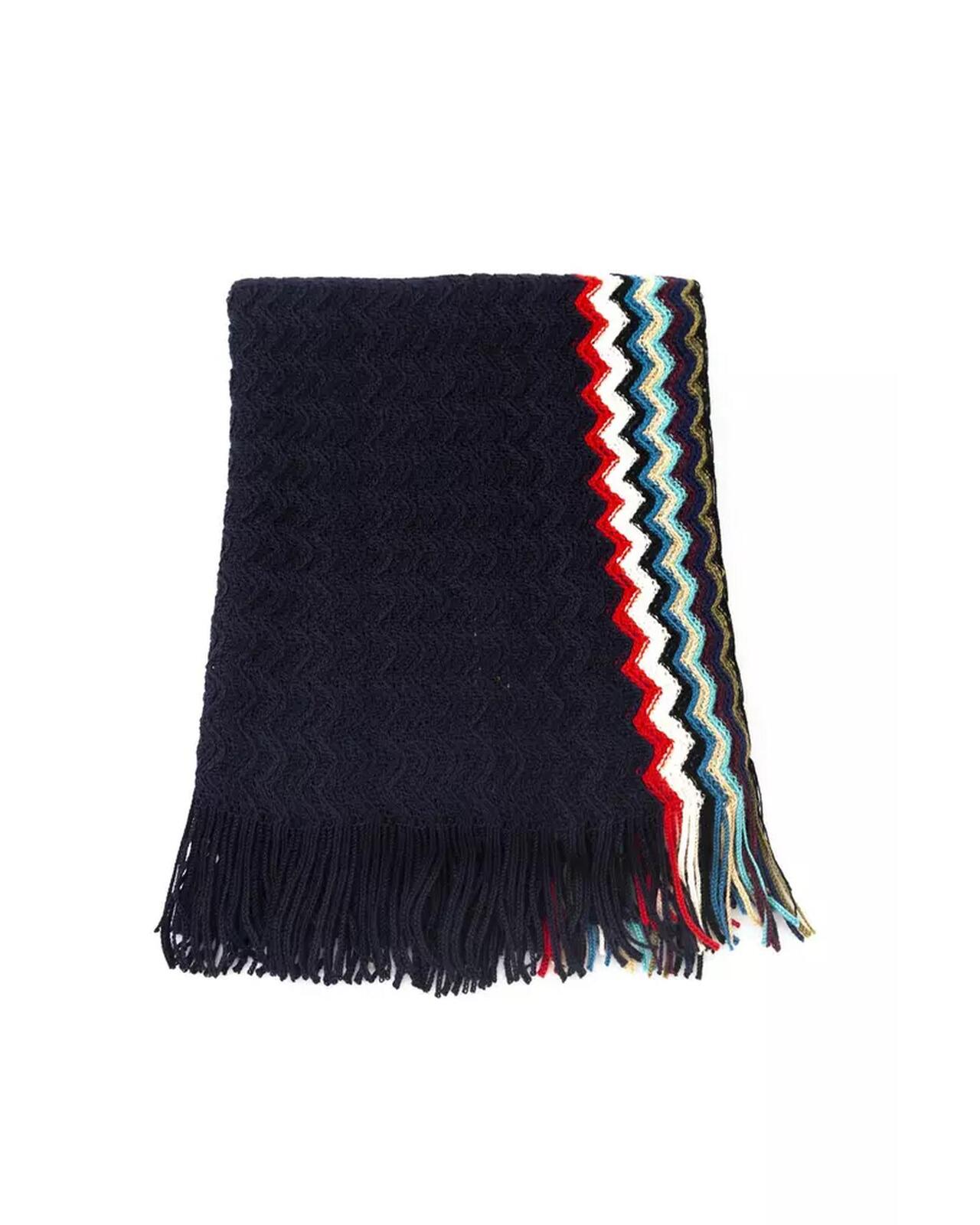 • Black wool scarf with fringed design