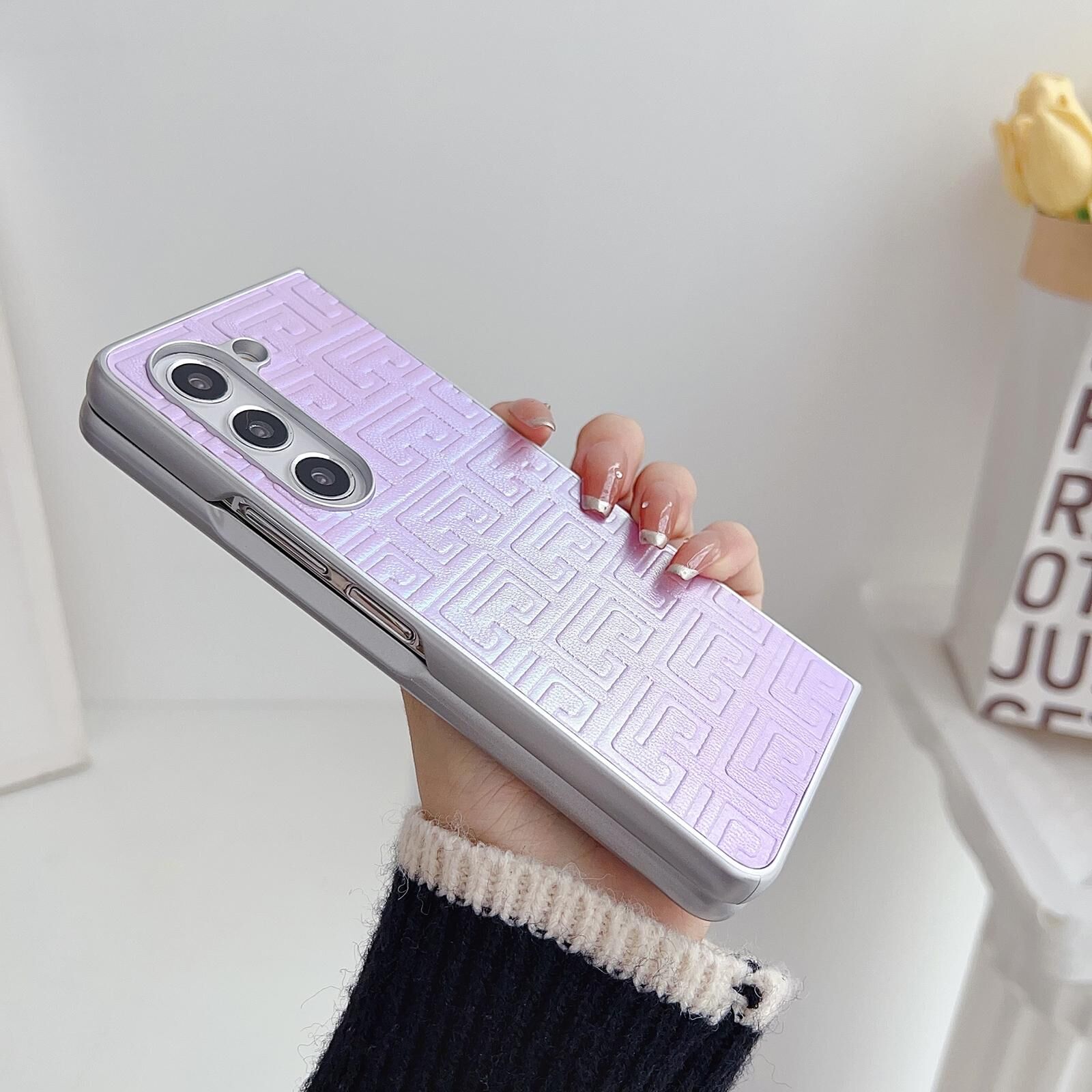 • 1 x Gradient Geometric Leather Phone Case with Pearlescent Finish for Samsung Galaxy Z Fold4 5g