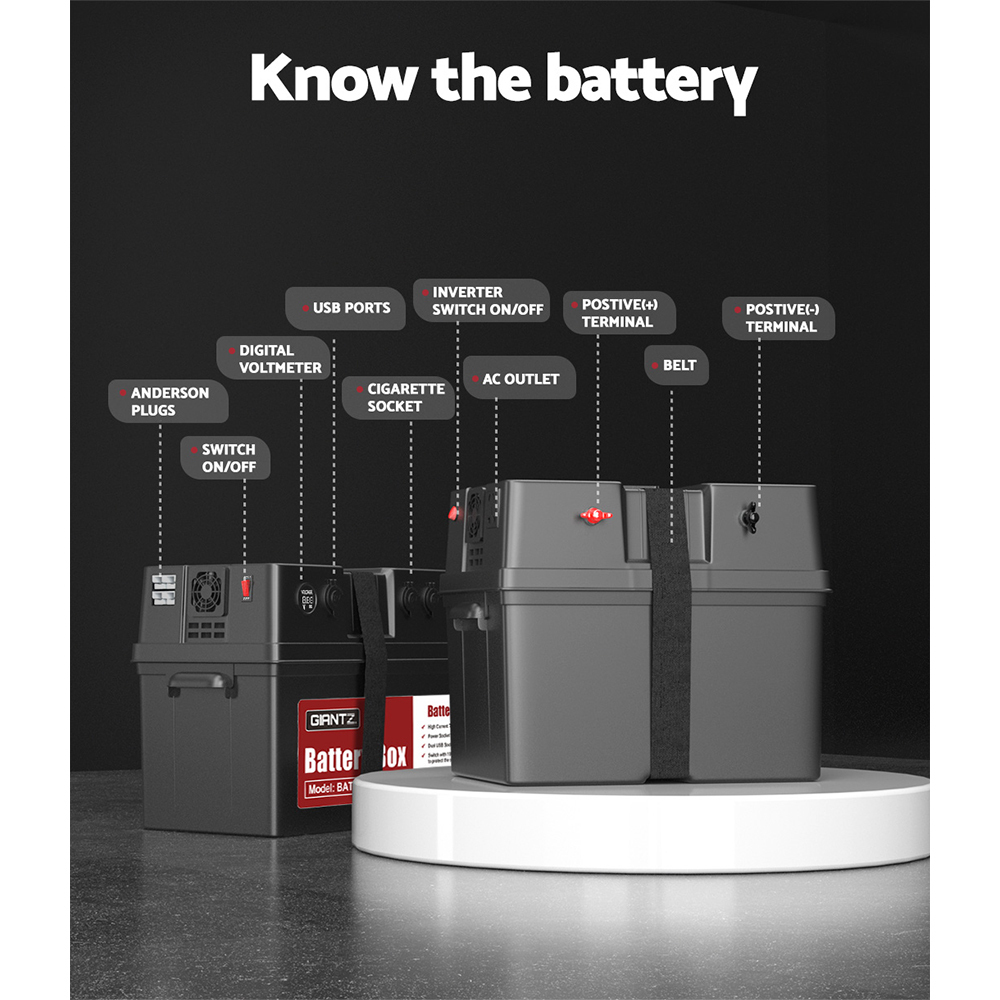 Giantz Battery Box 500W Inverter Deep Cycle Battery Portable Caravan Camping USB