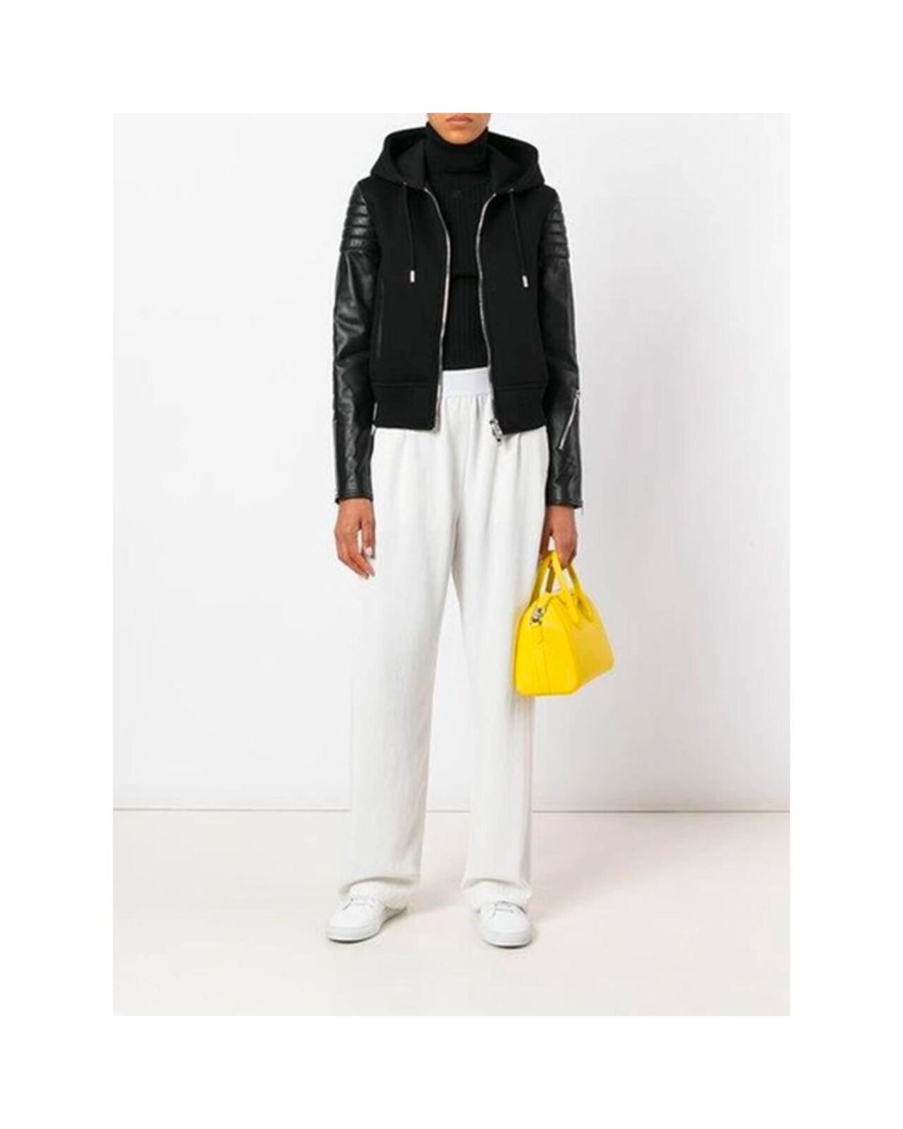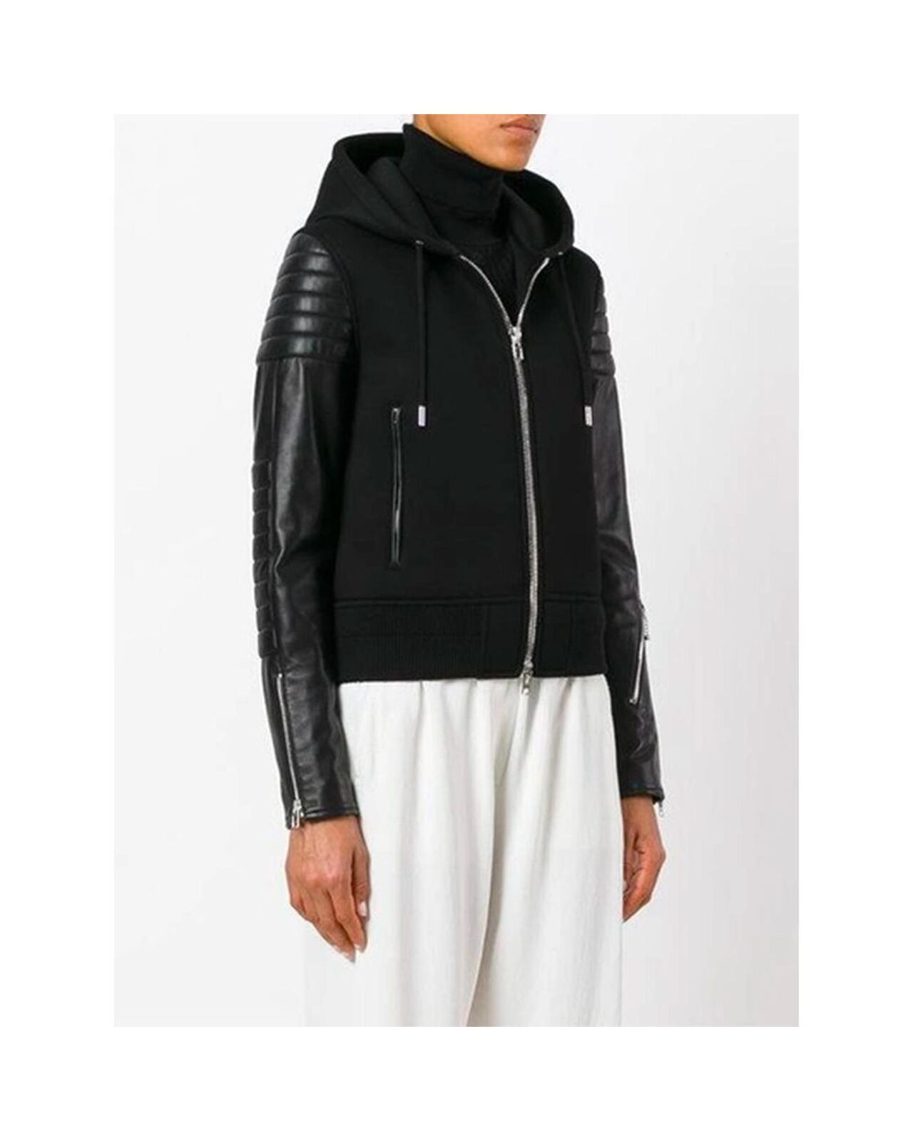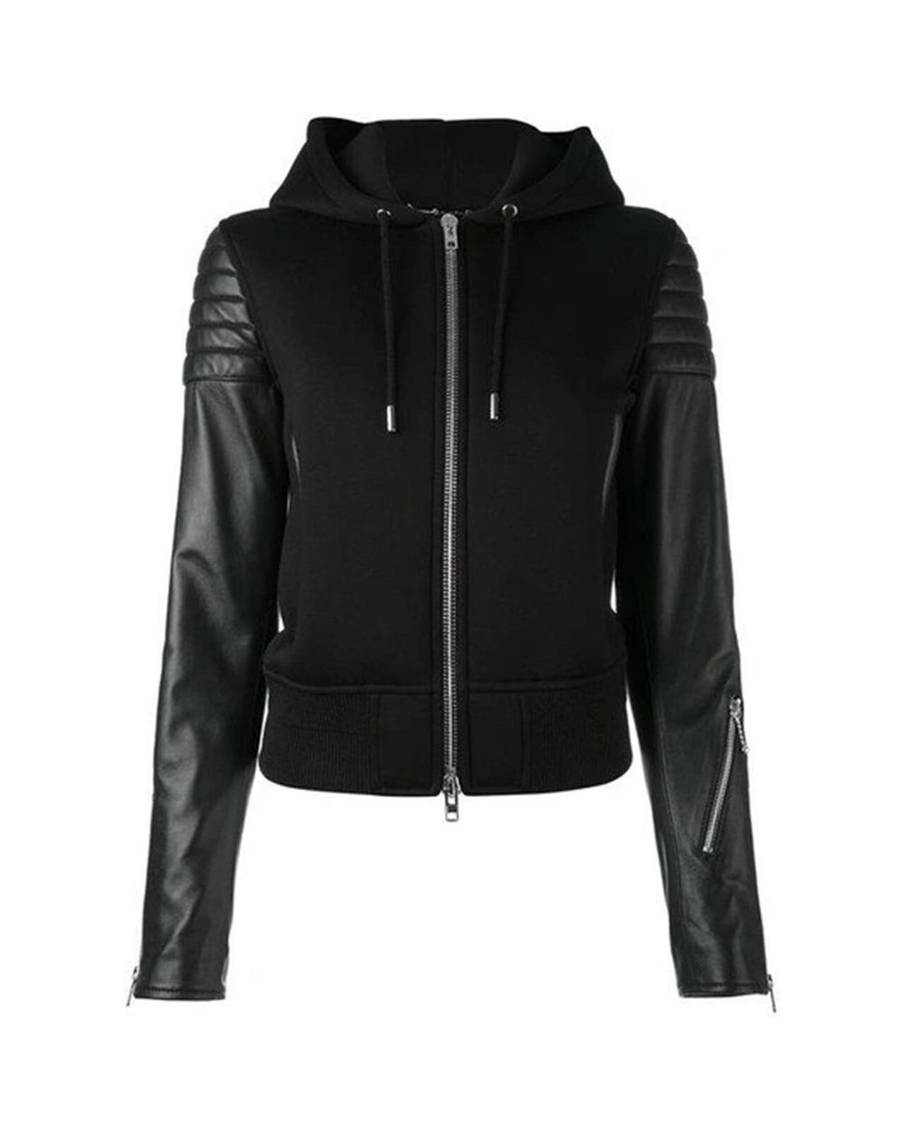 • Black viscose hooded jacket
