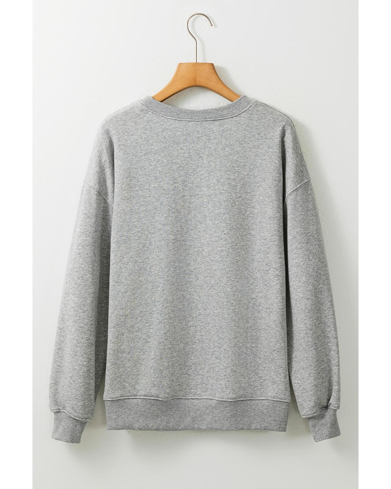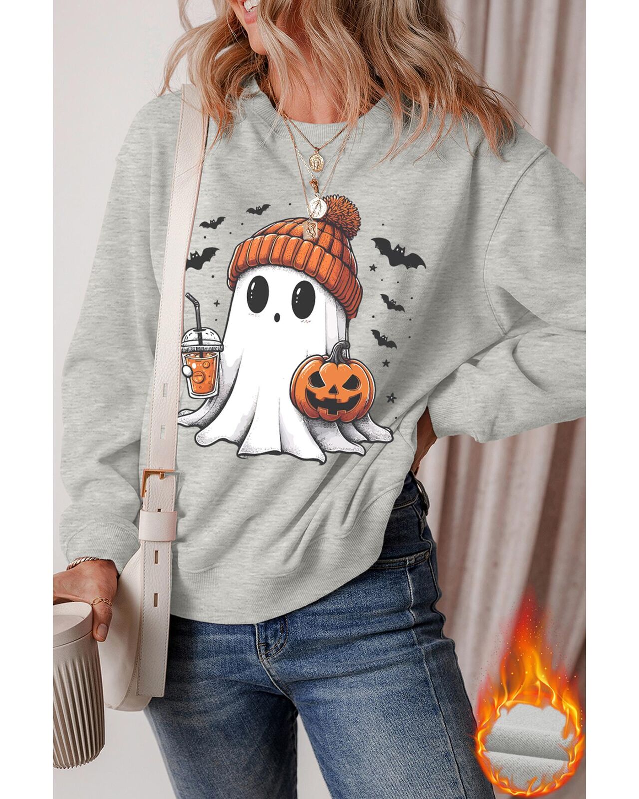 • Cozy and playful Gray Halloween Ghost Print Crewneck Drop Shoulder Sweatshirt