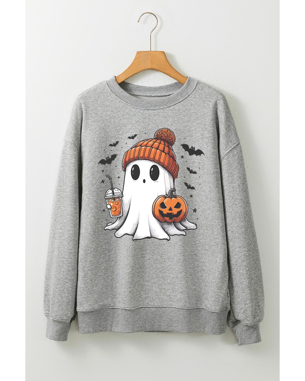 • Cozy and playful Gray Halloween Ghost Print Crewneck Drop Shoulder Sweatshirt