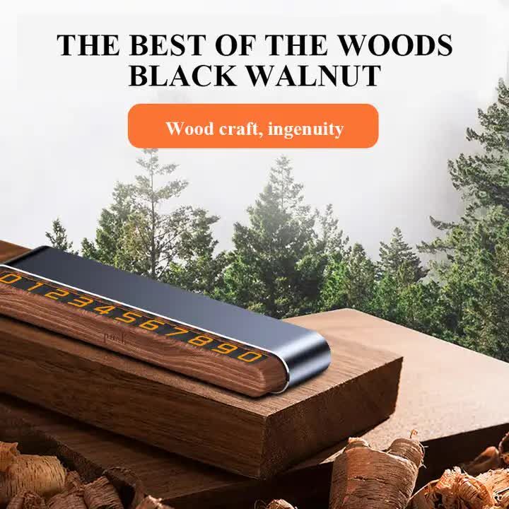 Upgrade your car's interior with this sleek temporary parking card. Made from premium alloy and natural wood, it combines luxury aesthetics with practical design. The sliding privacy cover ensures your number is only visible when needed, making it perfect for discreet and safe temporary parking.