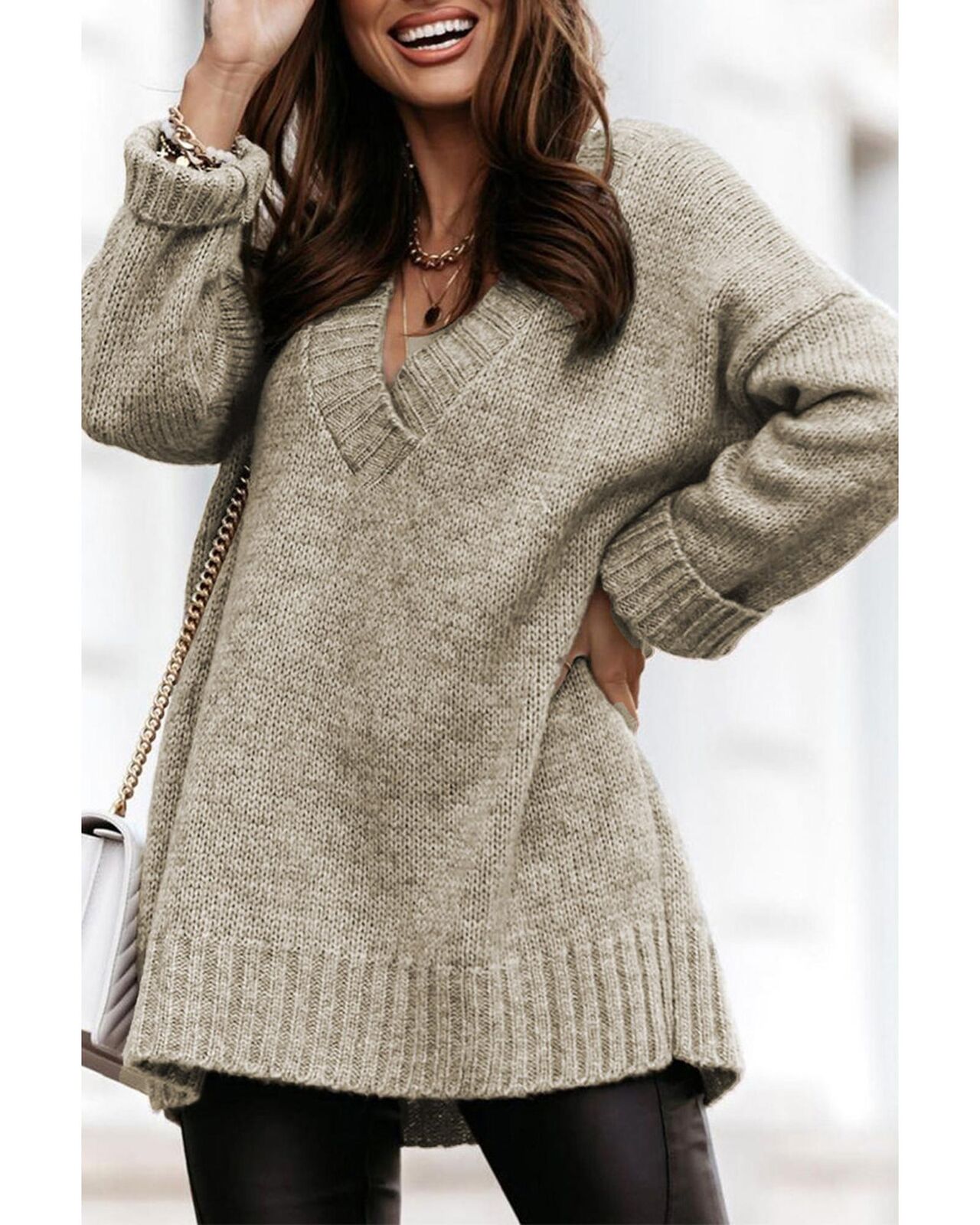 • Deep V neckline highlights your neck and collarbone