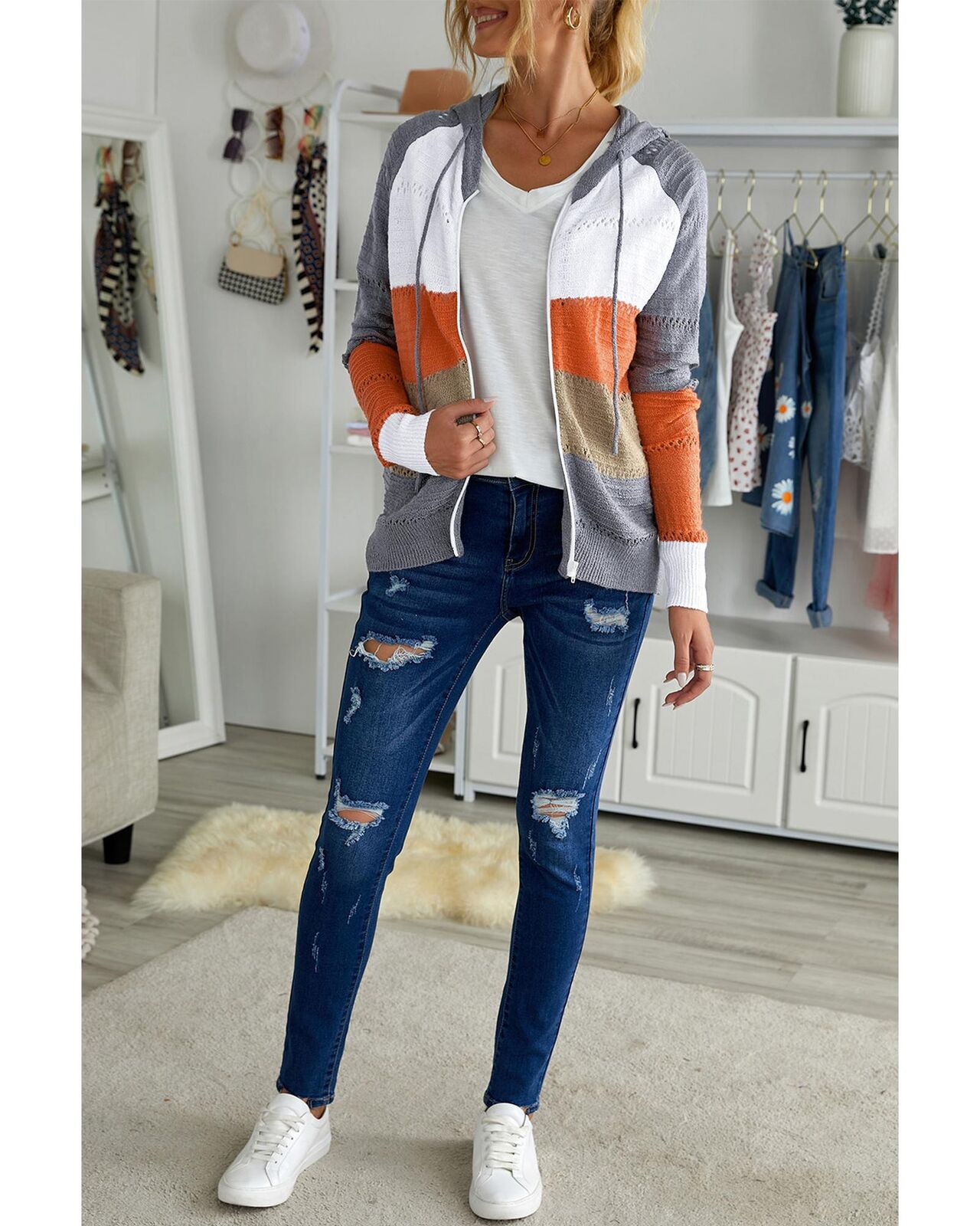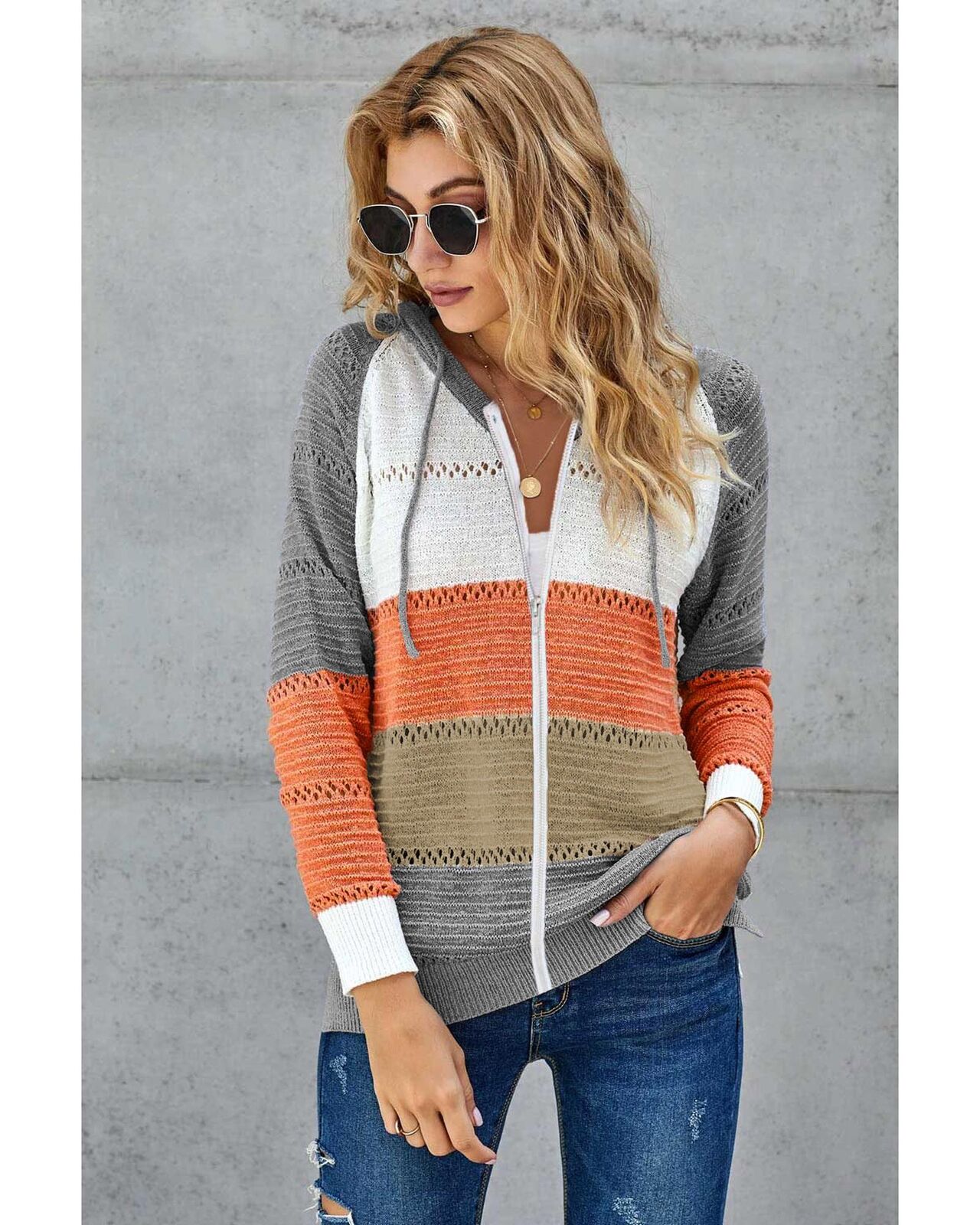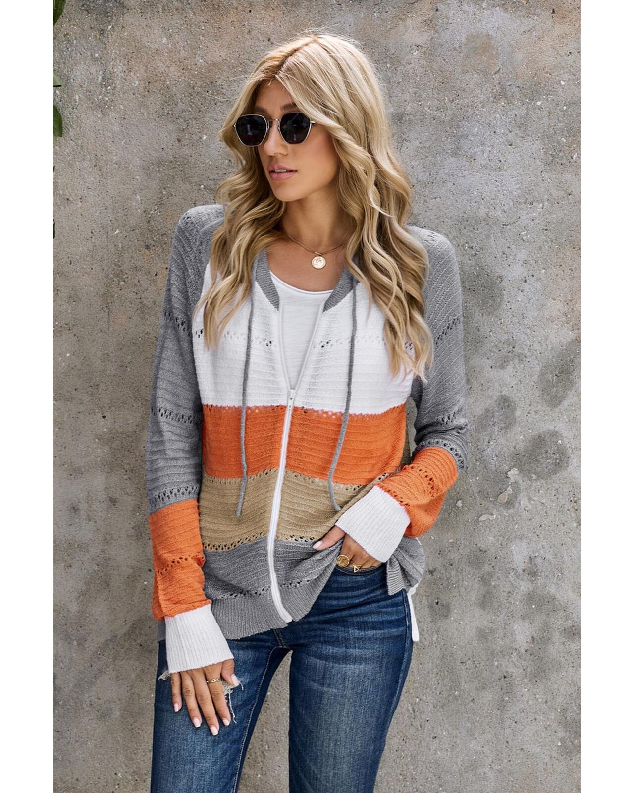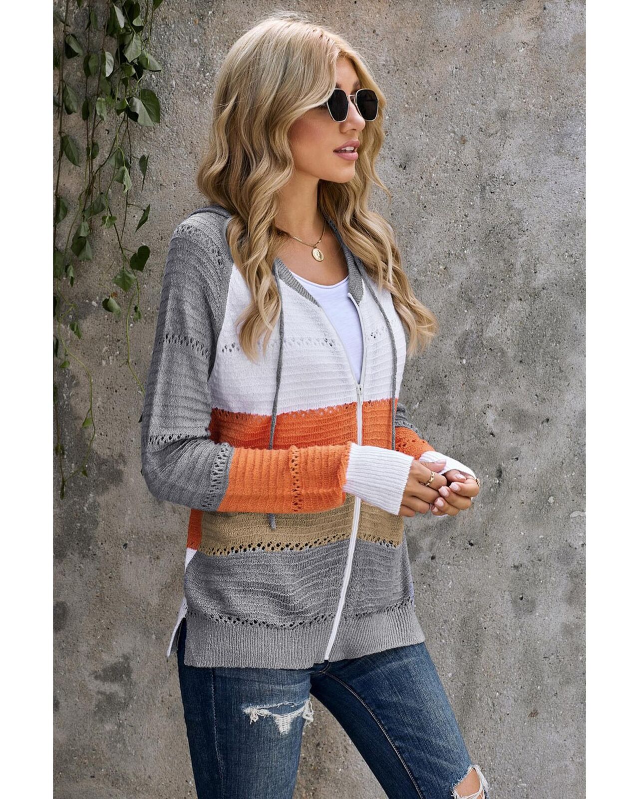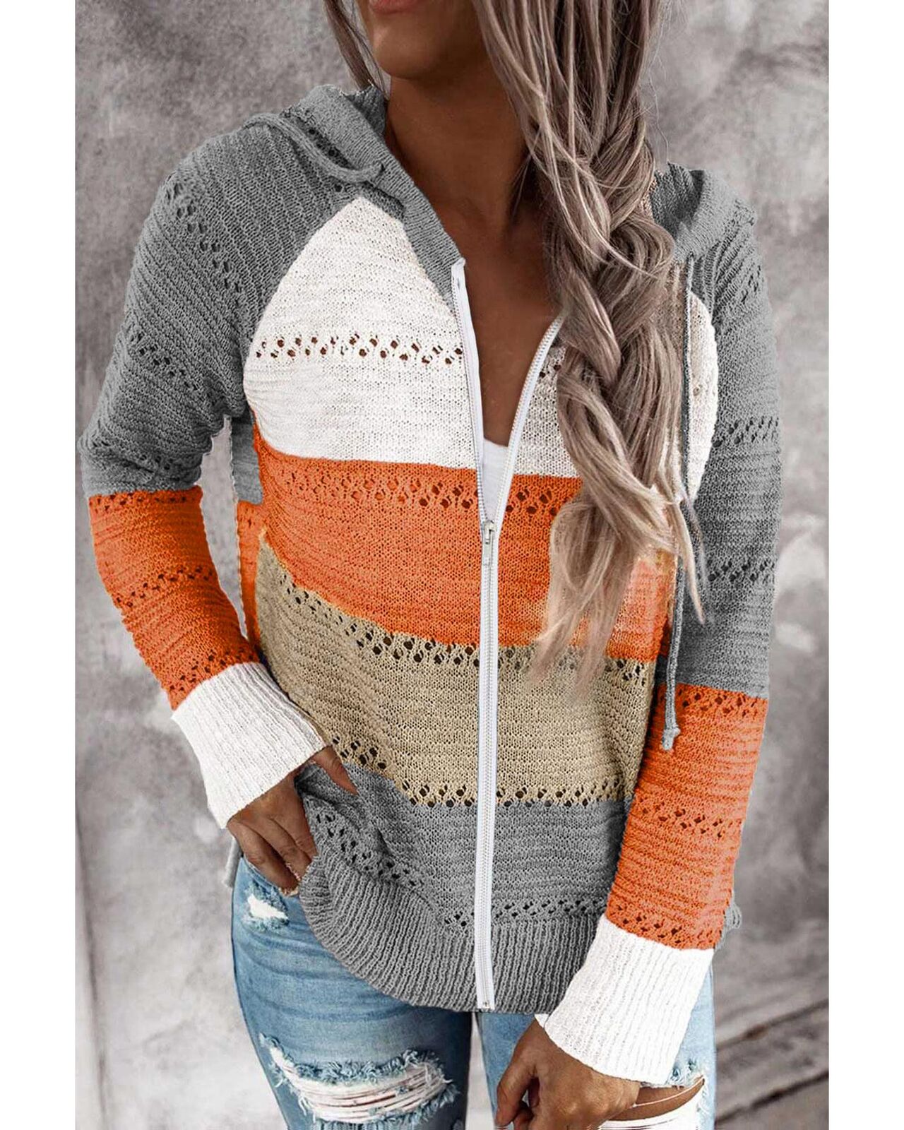 • Stylish and trendy Zipped Front Colorblock Hollow