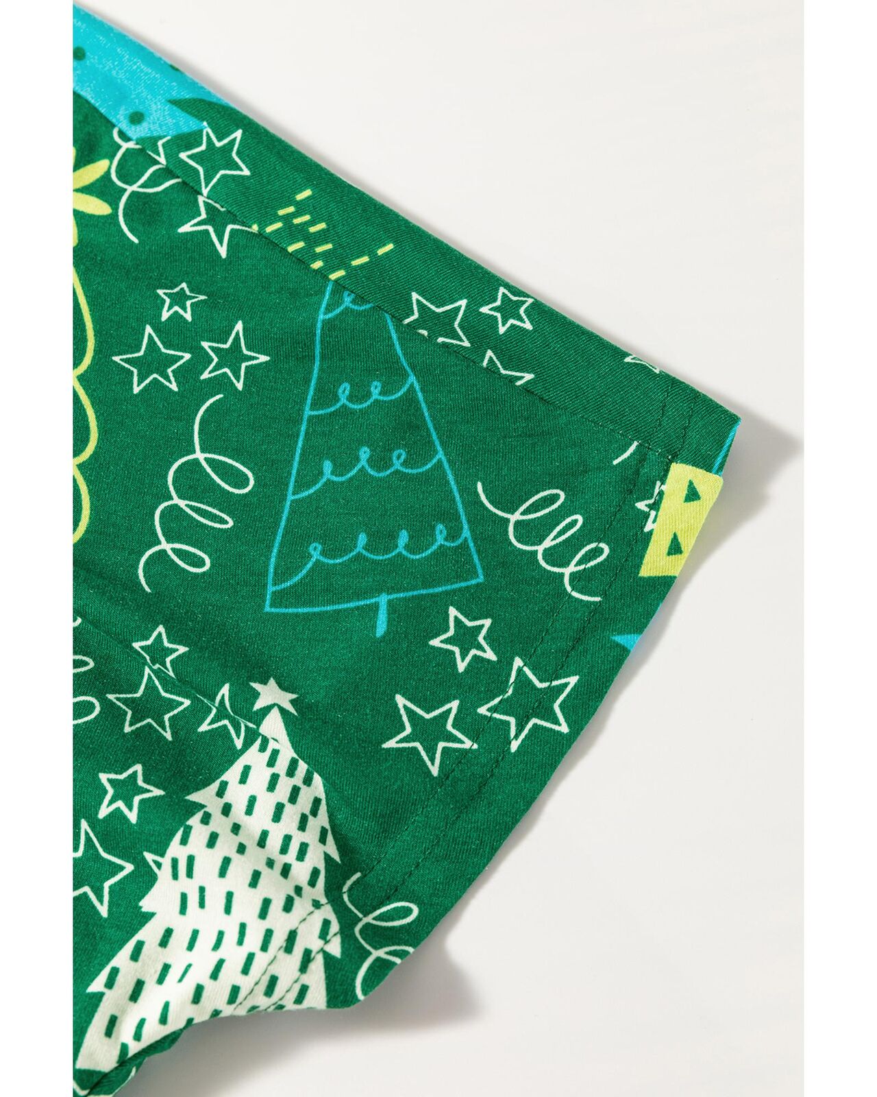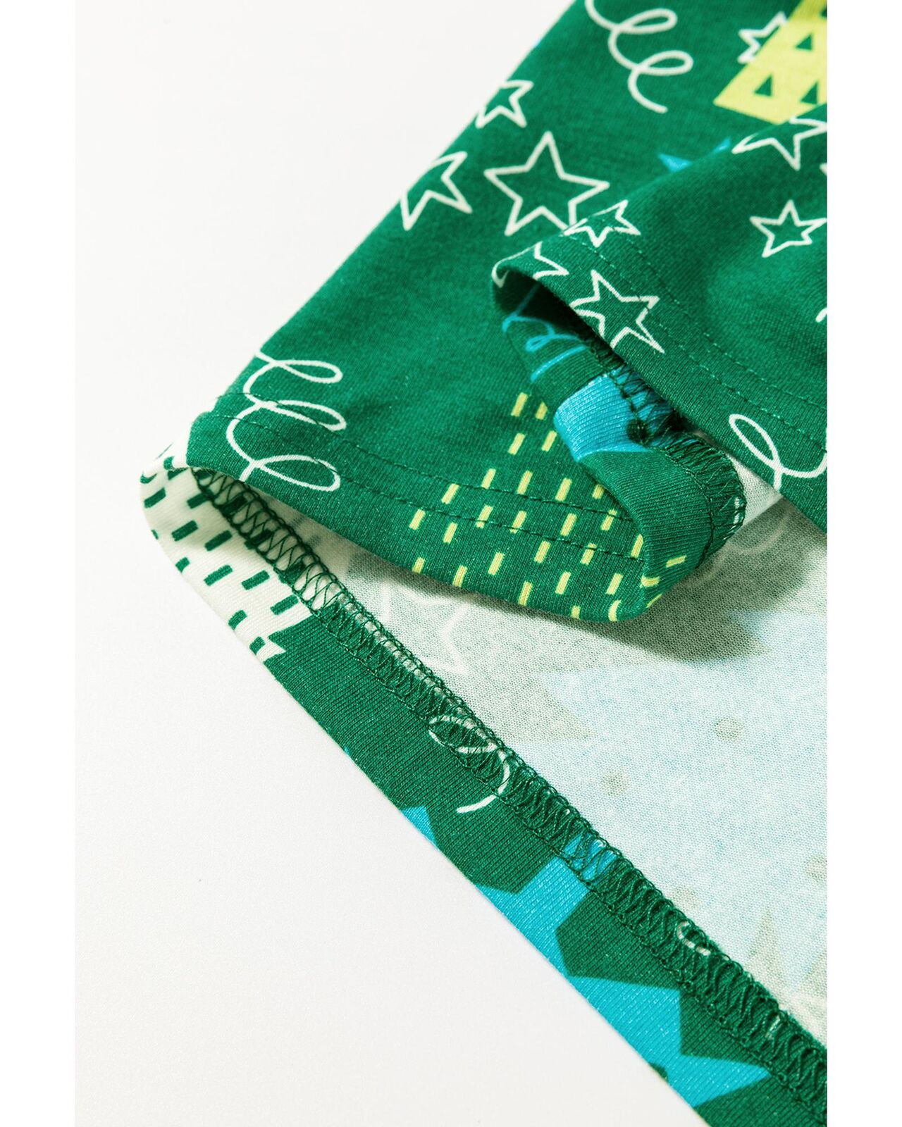 • Stylish Green Christmas Tree Print V Neck Tee and Pants Lounge Set
