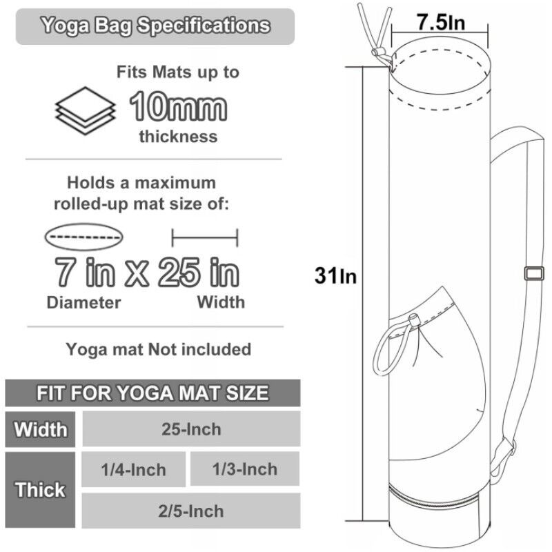 - Spacious Design: Fits most yoga mats with dimensions up to 75cm in length and 19cm in diameter, offering ample space for additional accessories.