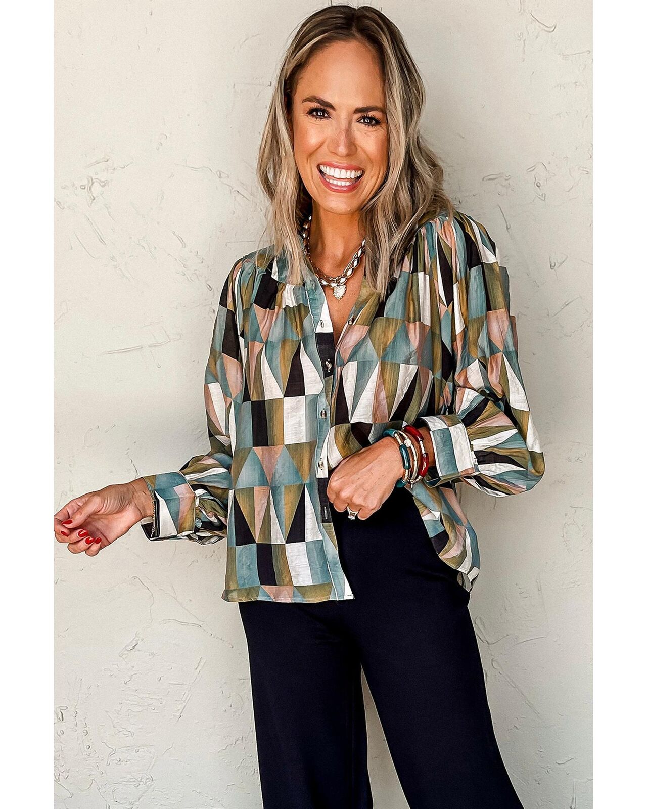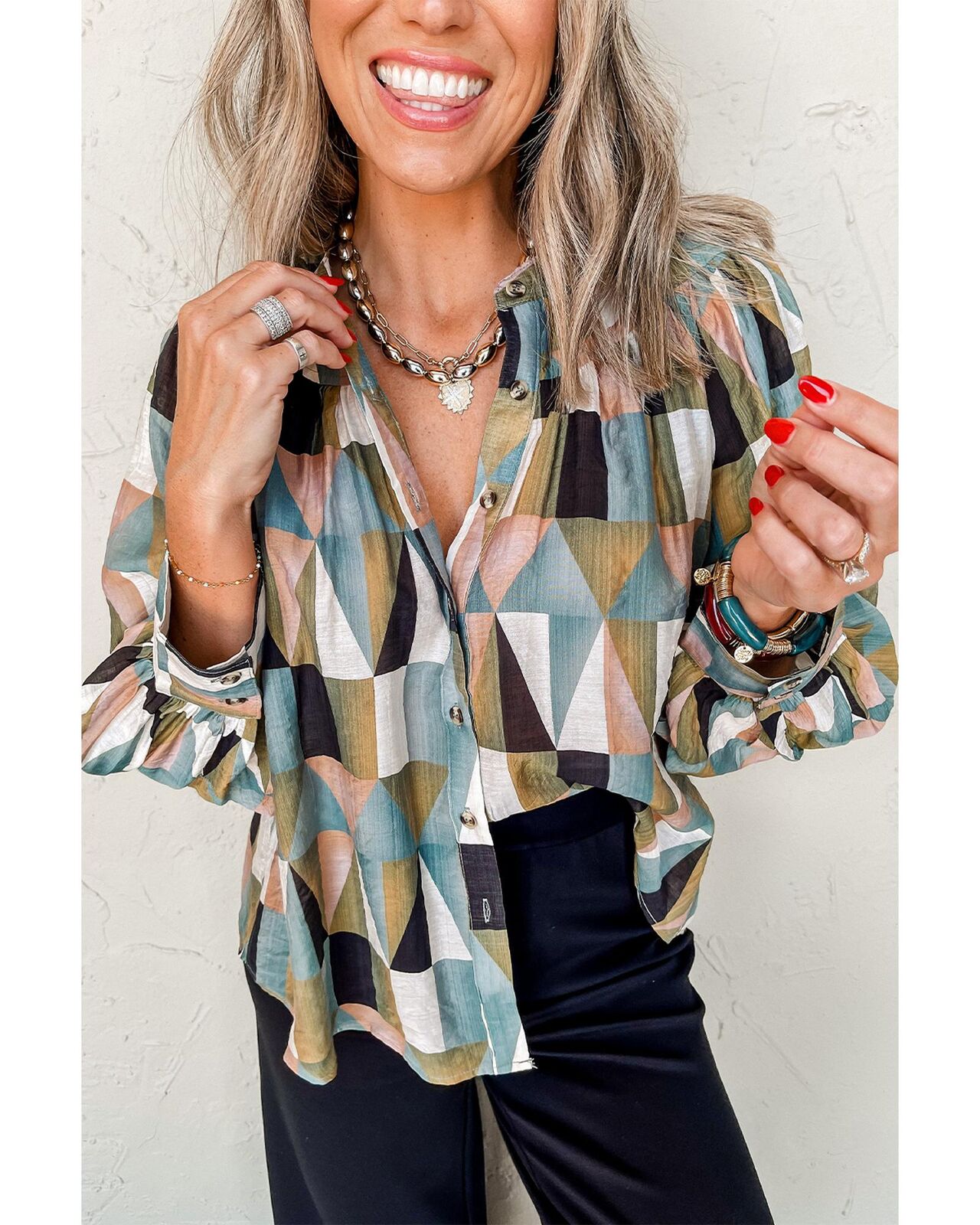 • Unique geometric print adds a stylish flair