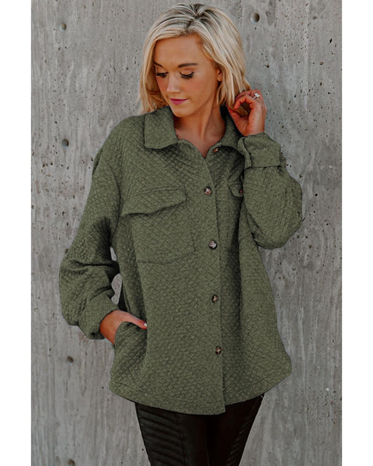 • Green Retro Quilted Flap Pocket Button Shacket