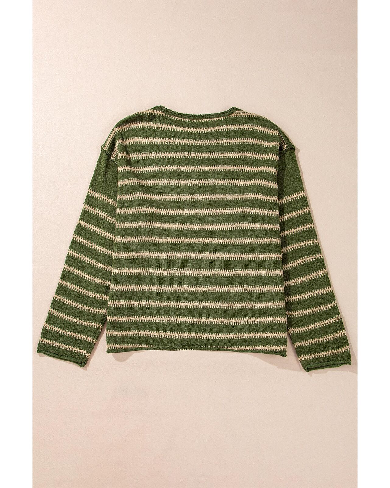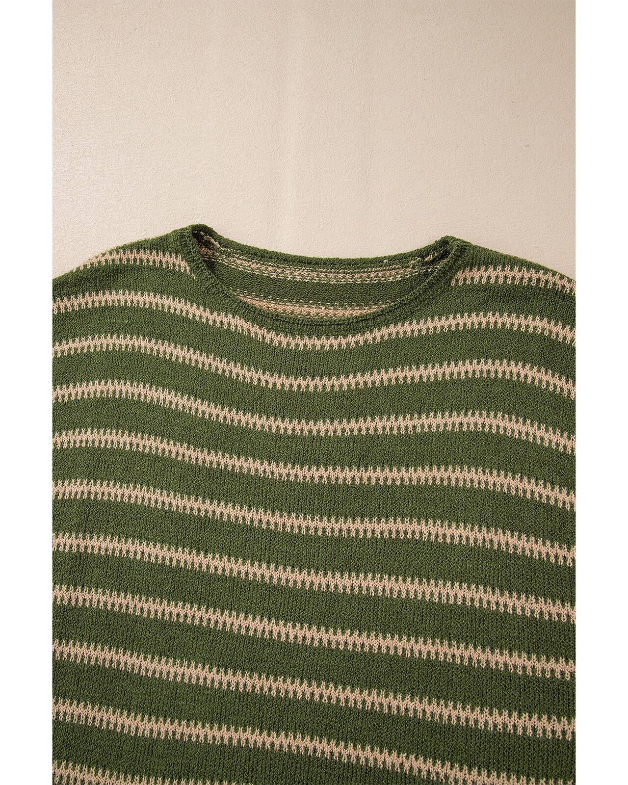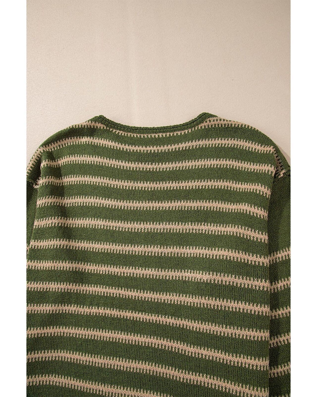 • Green stripe drop shoulder casual sweater