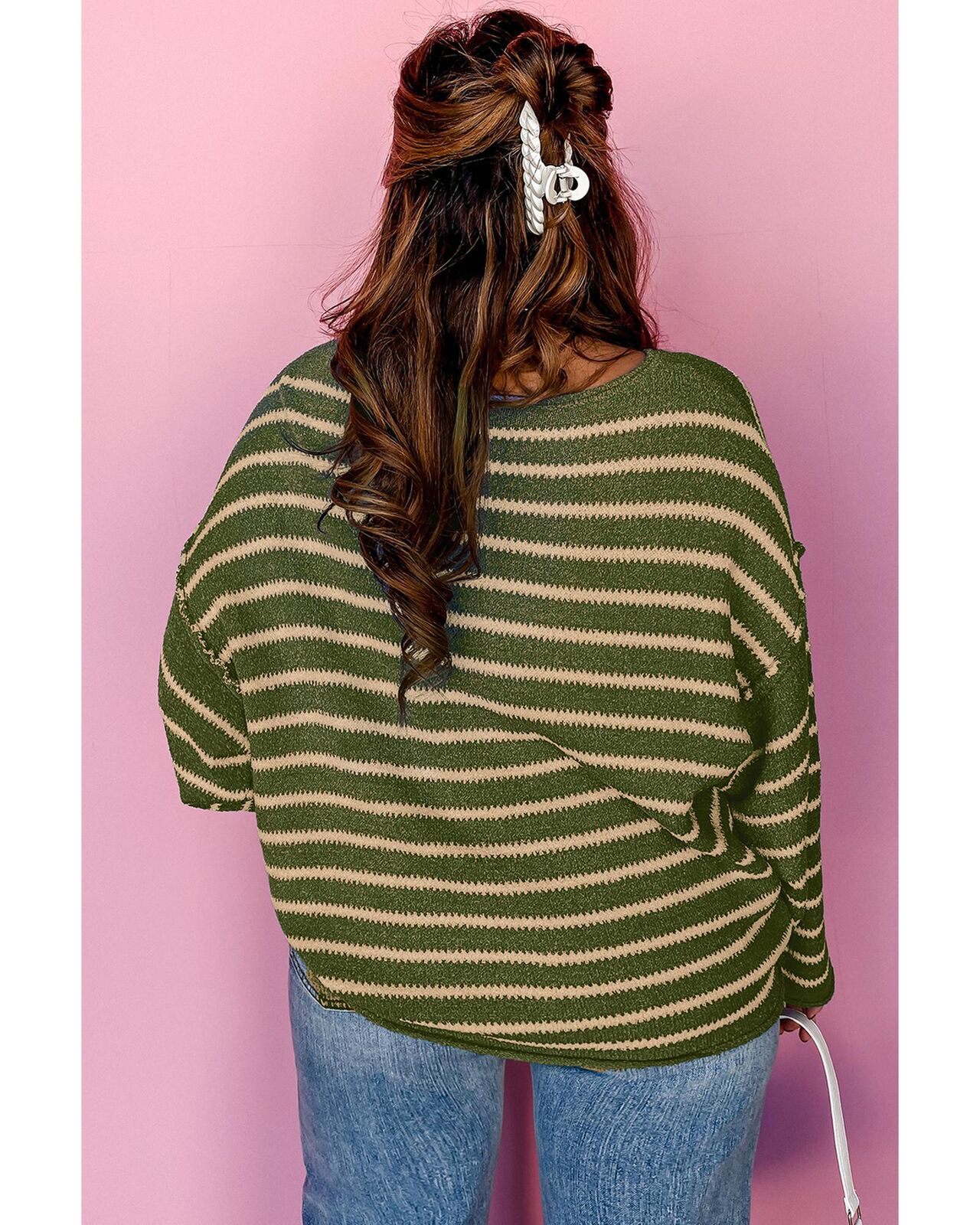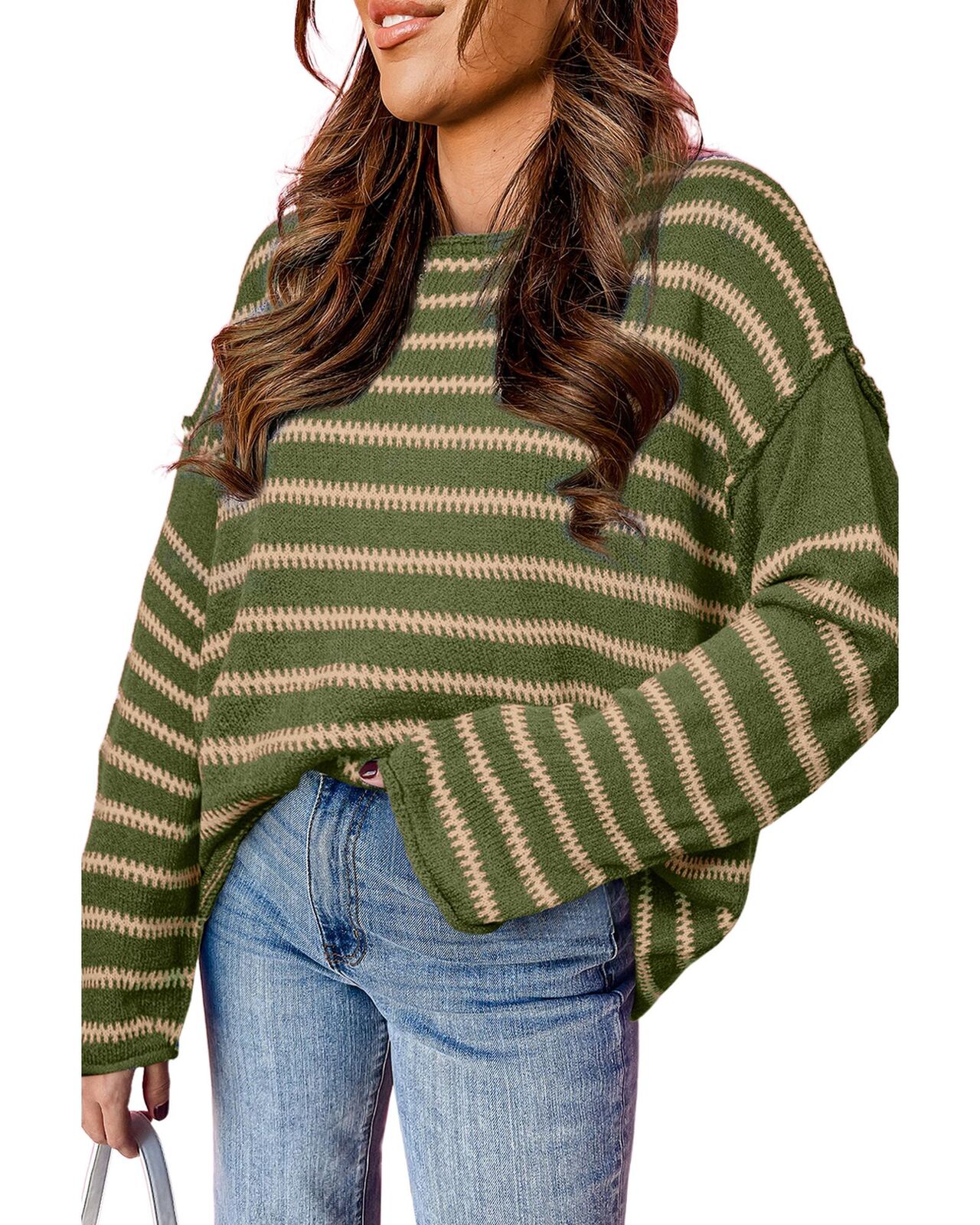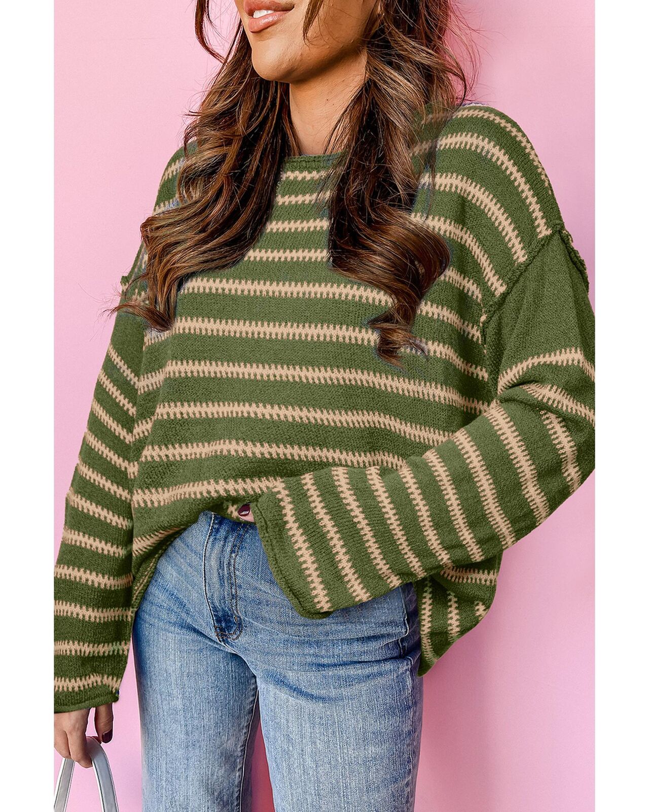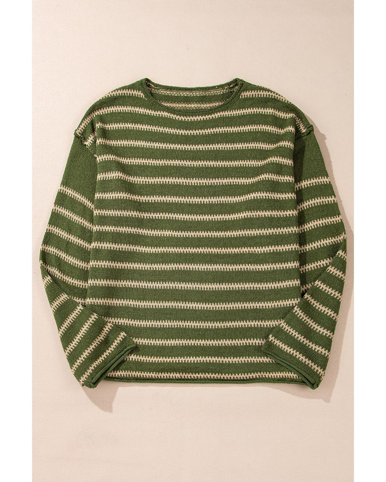 • Green stripe drop shoulder casual sweater