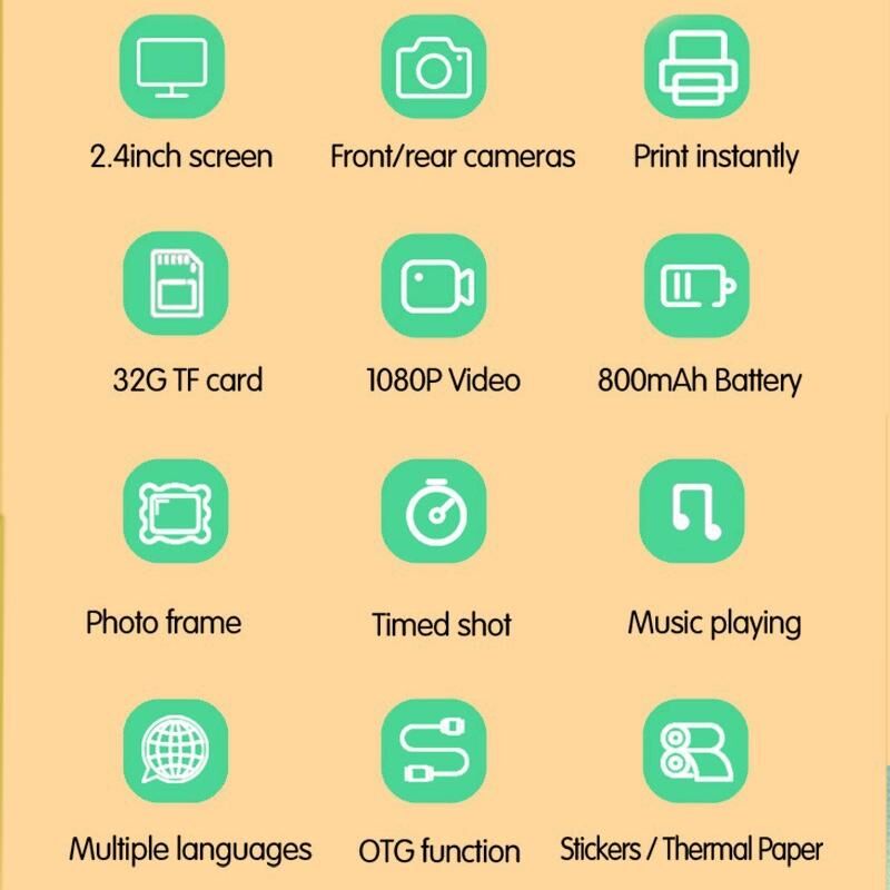 • 1 x 2.4 Inch 1080P Hd Instant Printing Camera Children Thermal Printer With 32G Tf Card