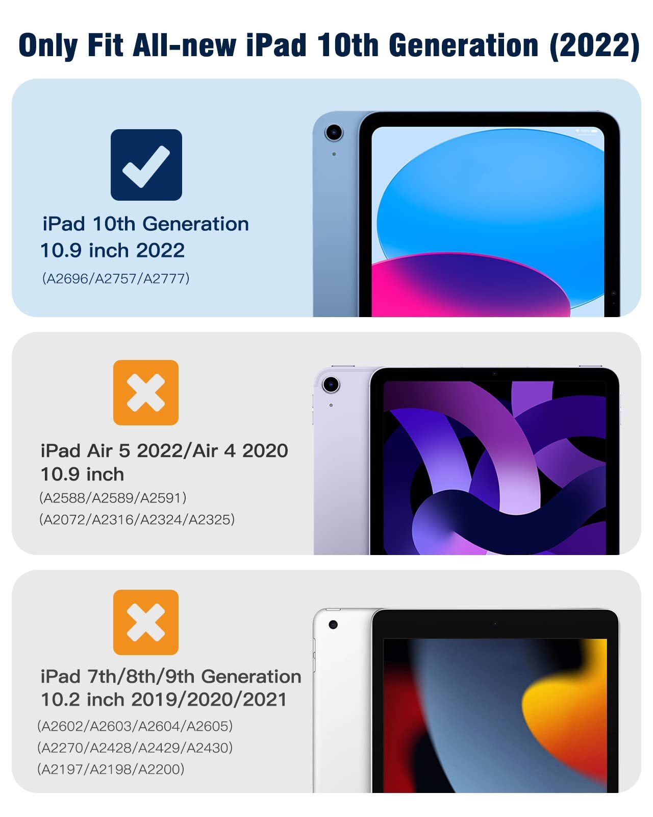Protective case for iPad Pro 10.9 inch 2022 released tablet, NOT compatible with any other iPad models. Please check back bottom of your iPad to find the model number.