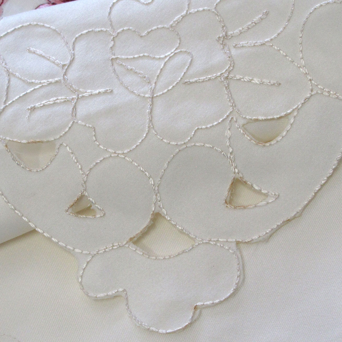 The Isadora Flowers Off White Embroidered Rectangular Tablecloth 180 x 275 cm showcases elegant floral embroidery in off white, pink, green, and sage colour tones. Its soft hue adds a timeless charm to any table setting, perfect for both festive occasions and casual dining. Designed for style, this tablecloth enhances your dining space with a touch of sophistication. 180cm x 275cm Oblong - 6 to 8 Seaters.