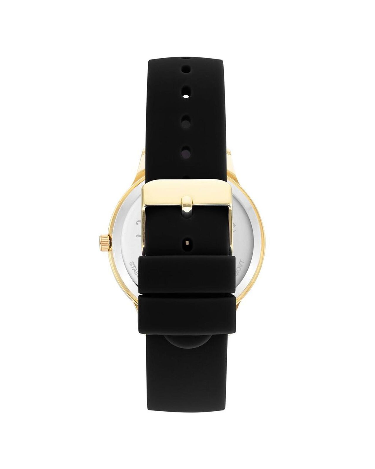 • Black silicone/rubber wristband with pin buckle closure