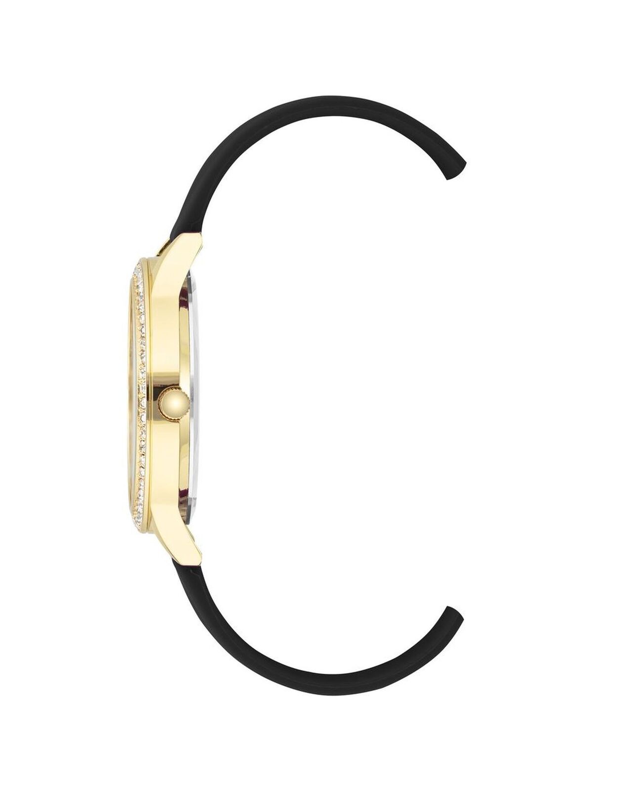 • Gold metal case with rhinestone face