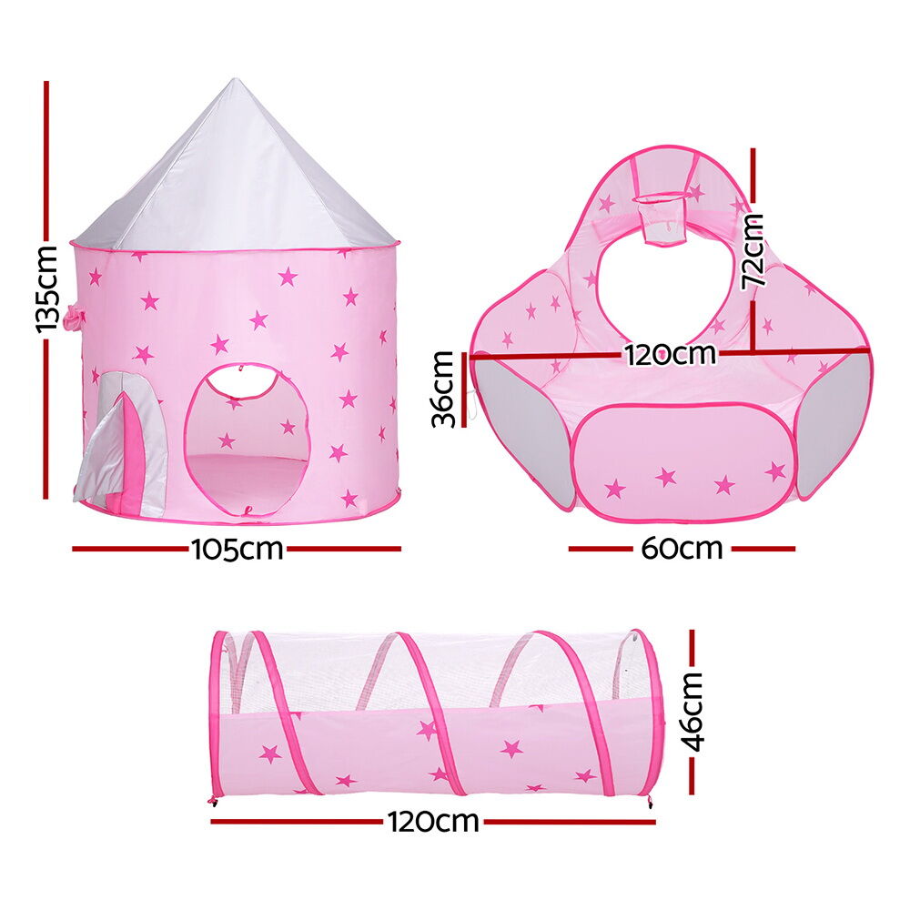 Keezi Kids Playhouse Play Tent Pop Up Castle Crawl Tunnel Basketball Hoop Pink