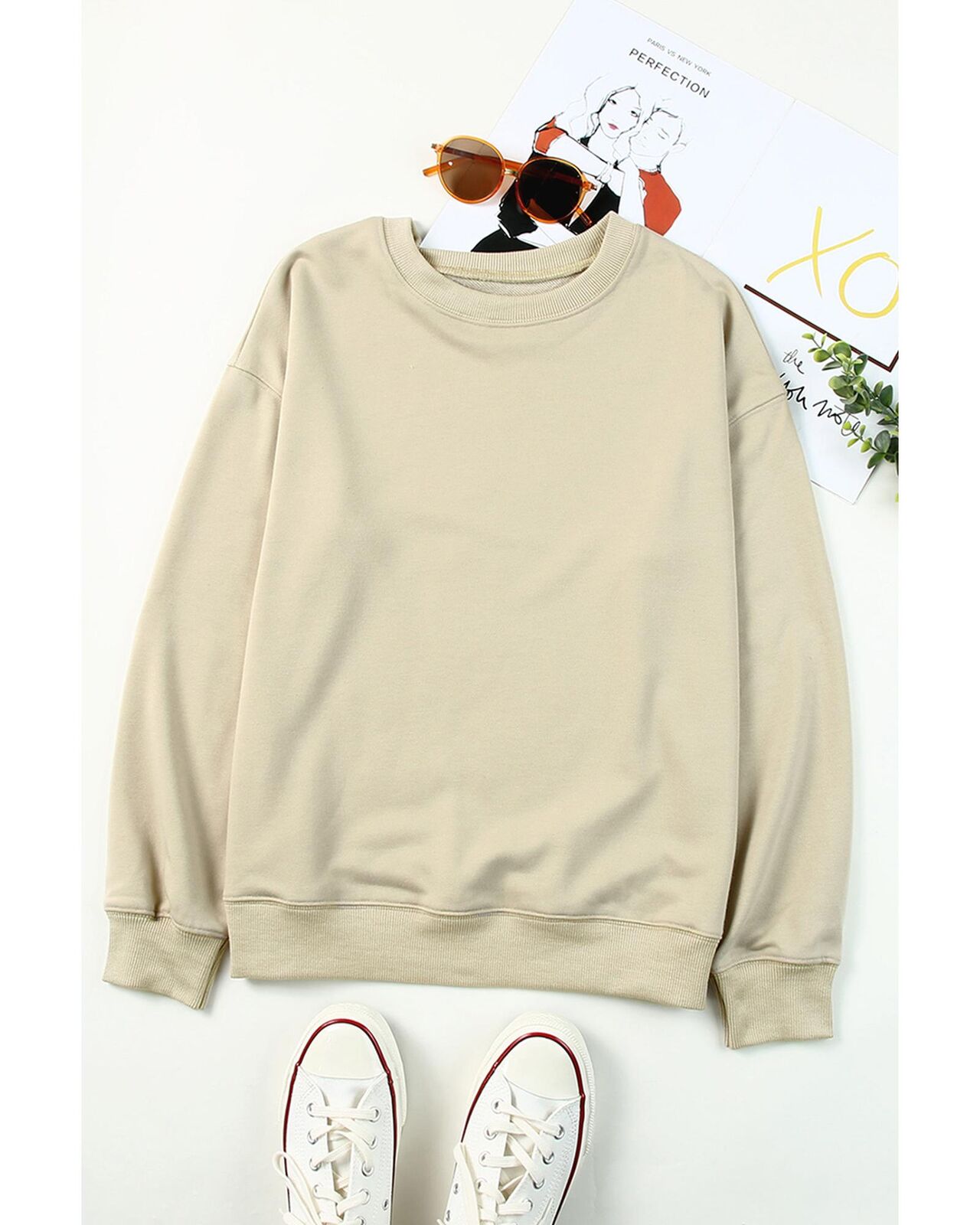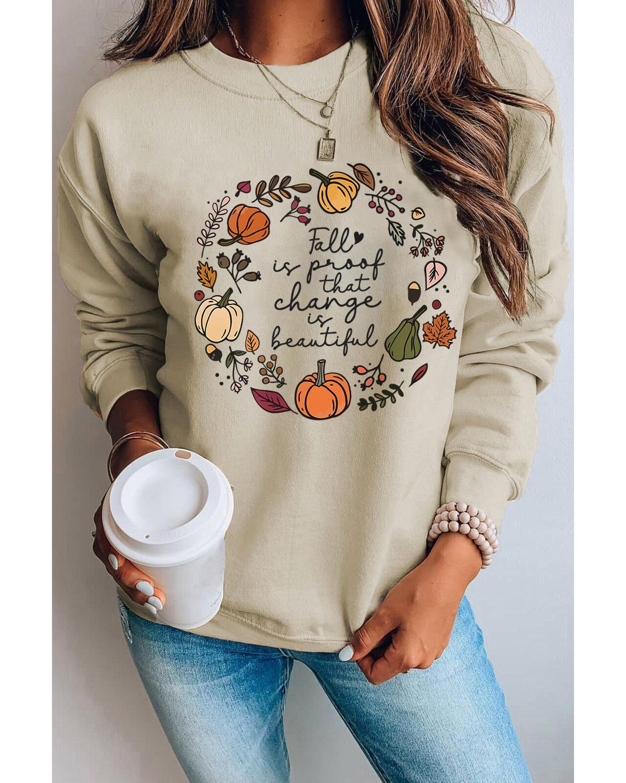 • Khaki Fall Vibe Pumpkin Print Round Neck Sweatshirt
