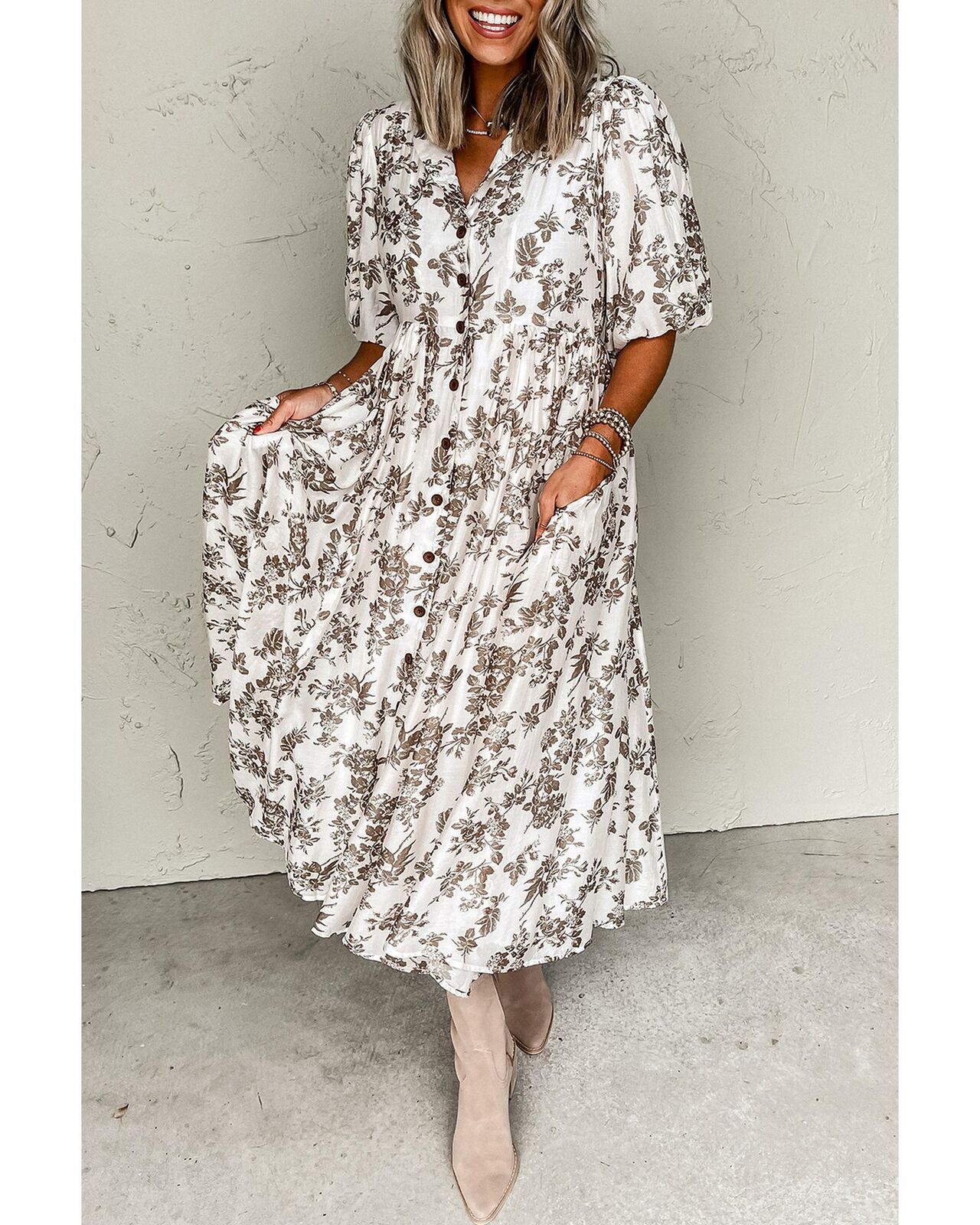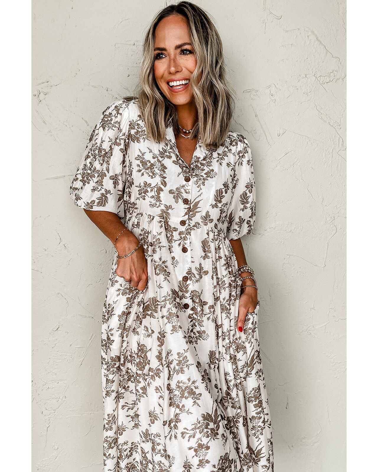 • neck buttoned front maxi dress