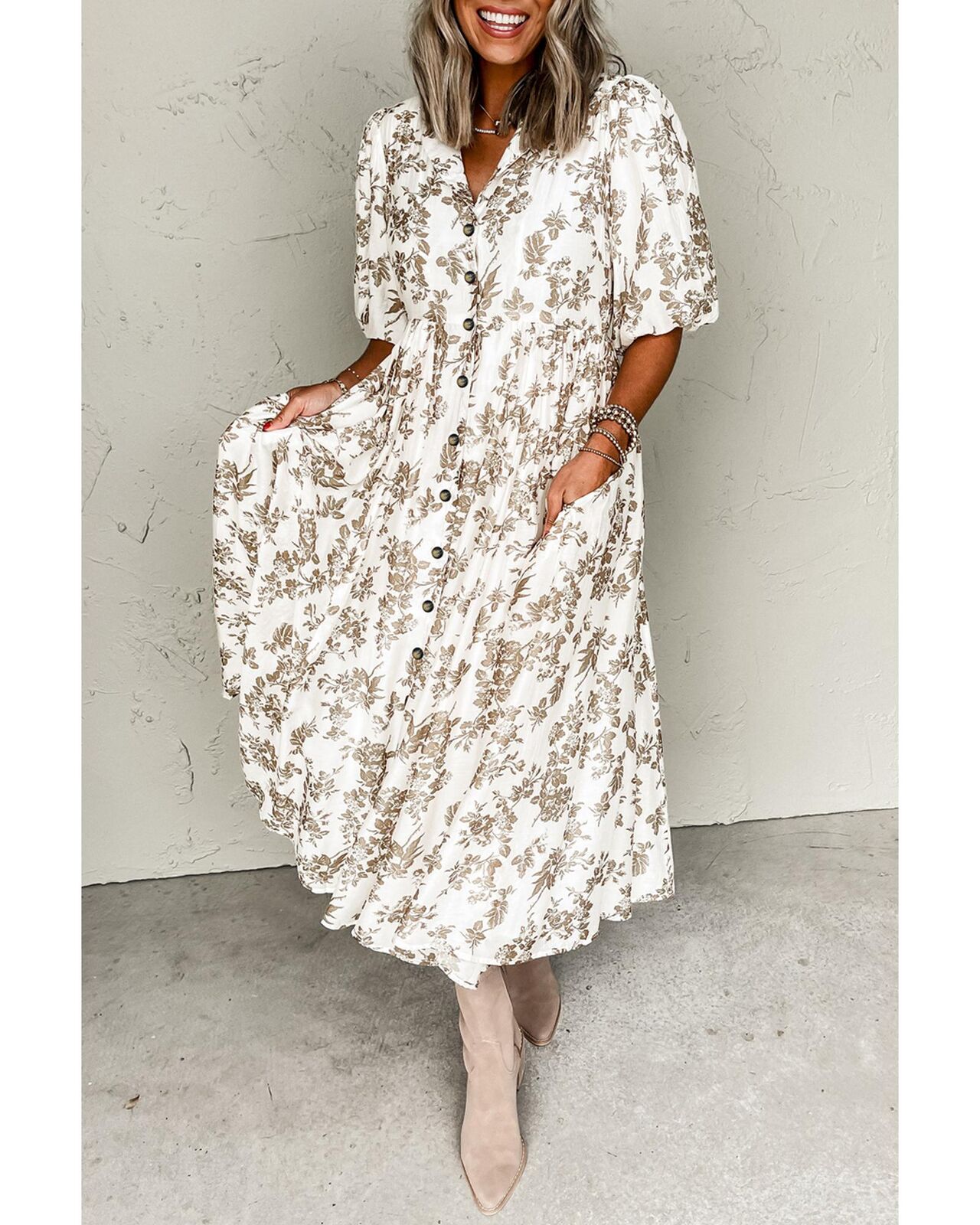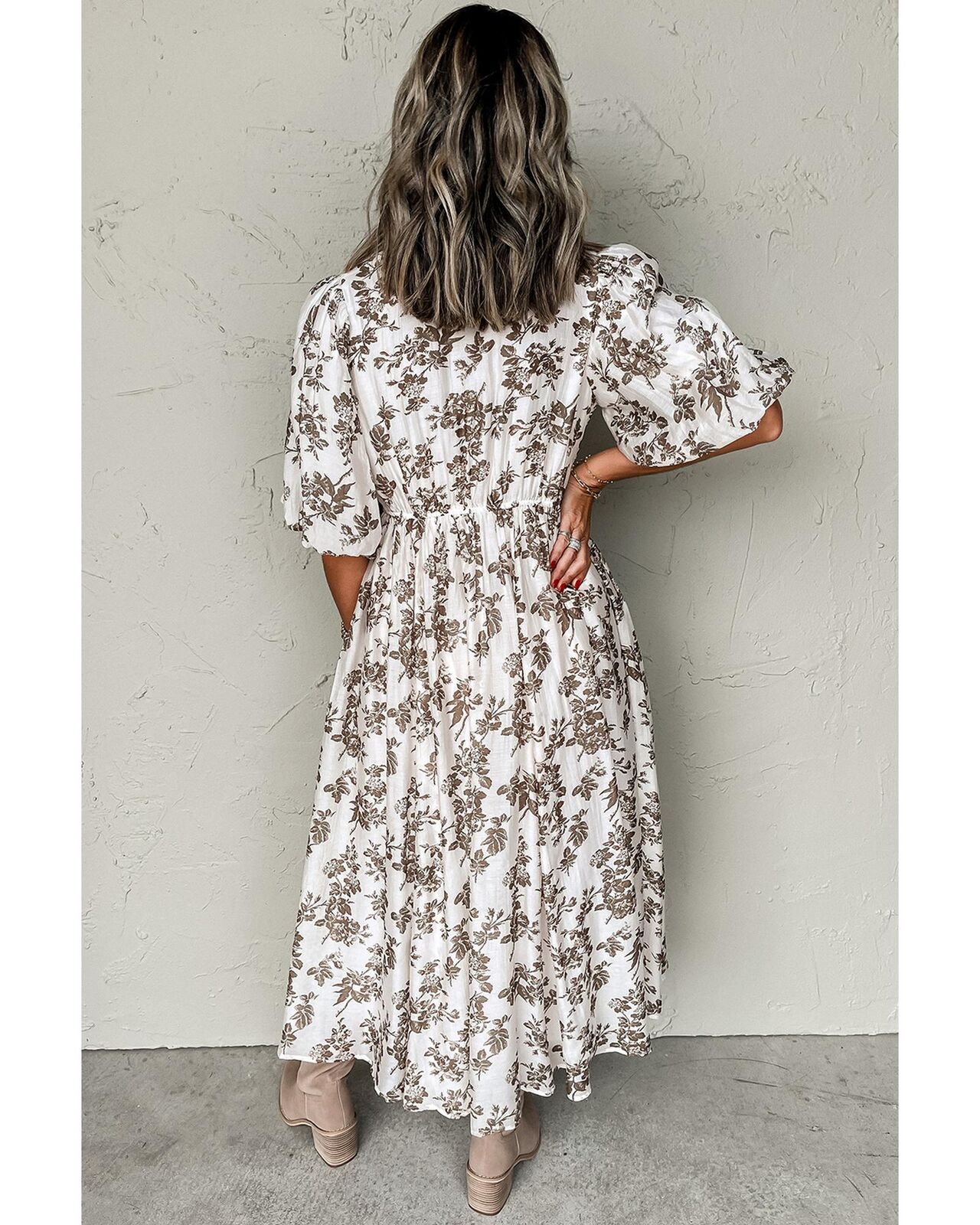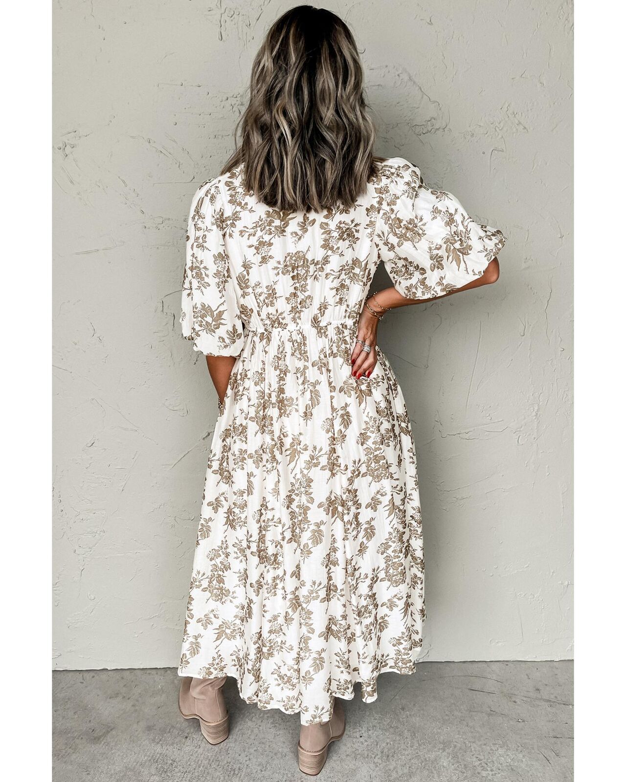 • Khaki floral puff sleeve v