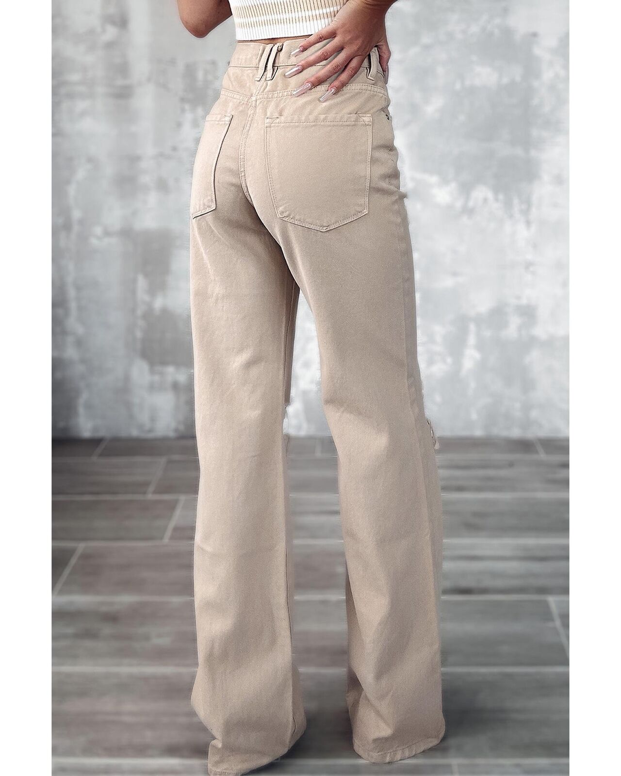 • Stylish Khaki High Waist Ripped Wide