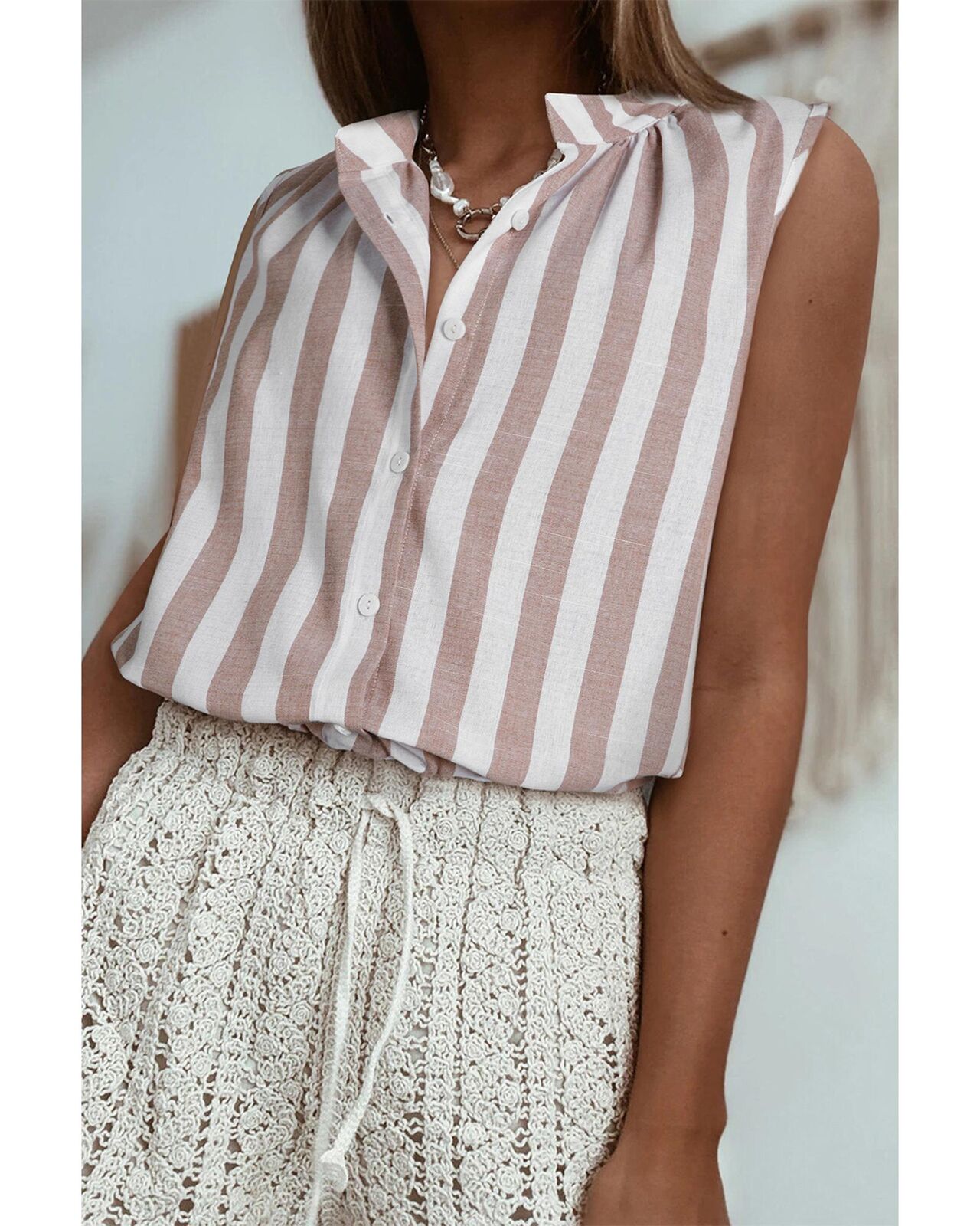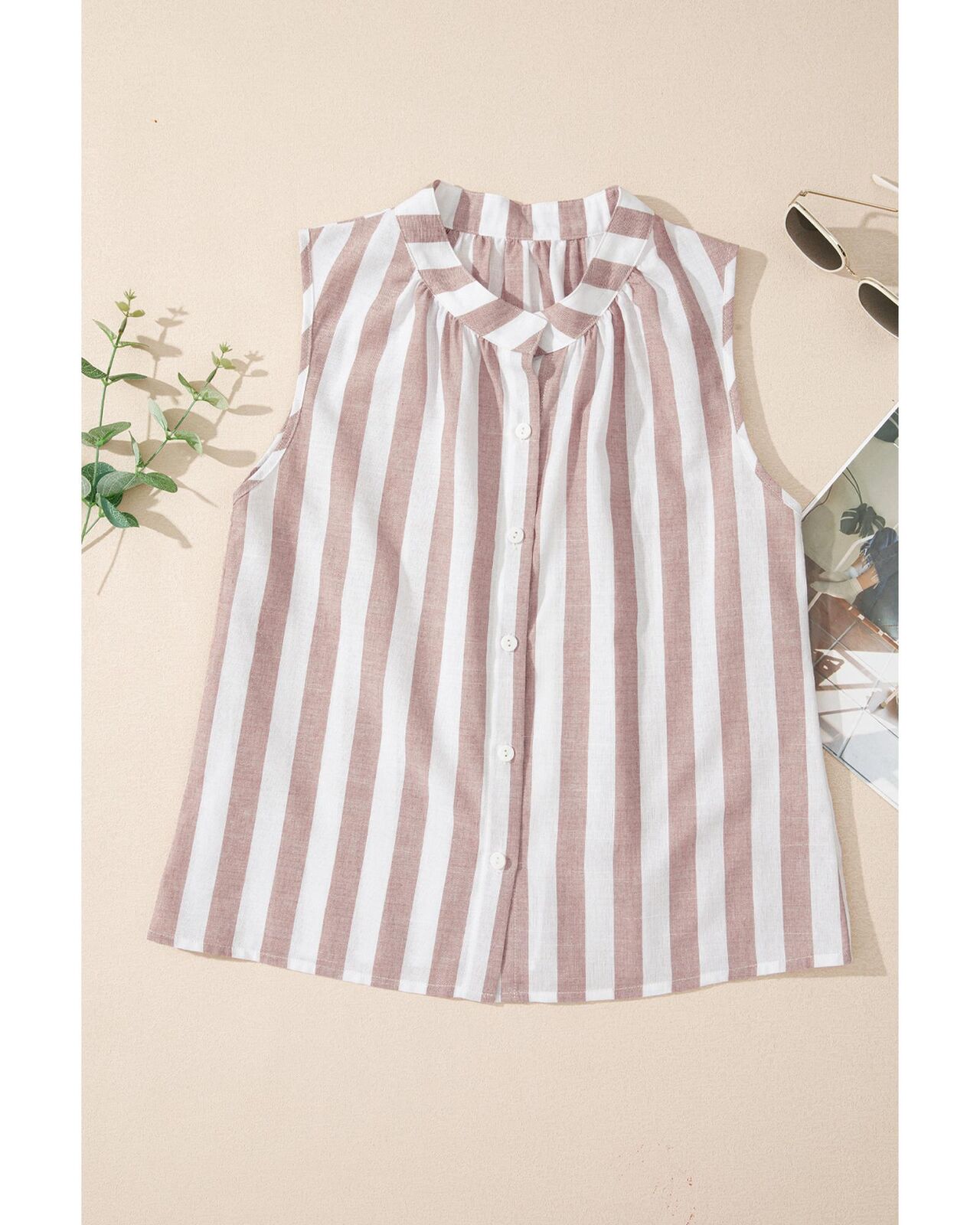 • Versatile striped sleeveless shirt for summer wardrobe