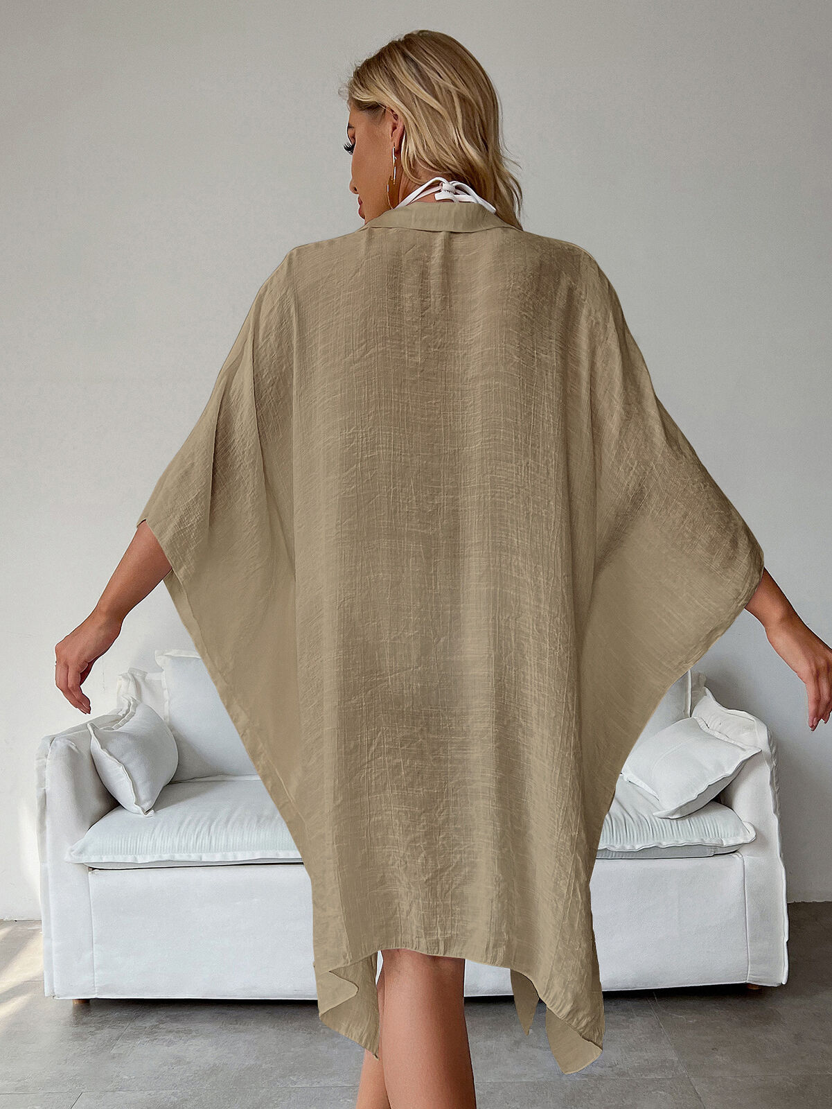 Khaki Summer Beach Cover-Up- Bamboo Cotton Sun Protection Cardigan