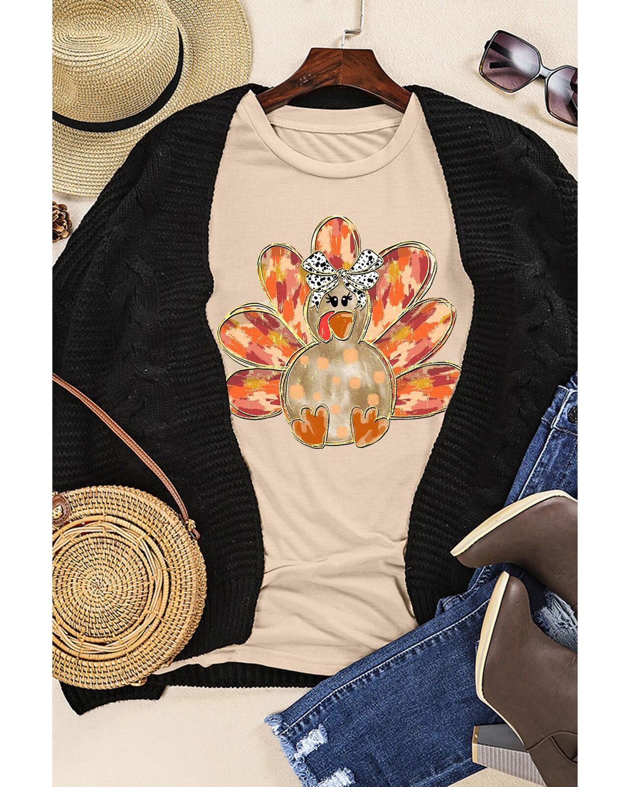• themed turkey graphic with bowknot