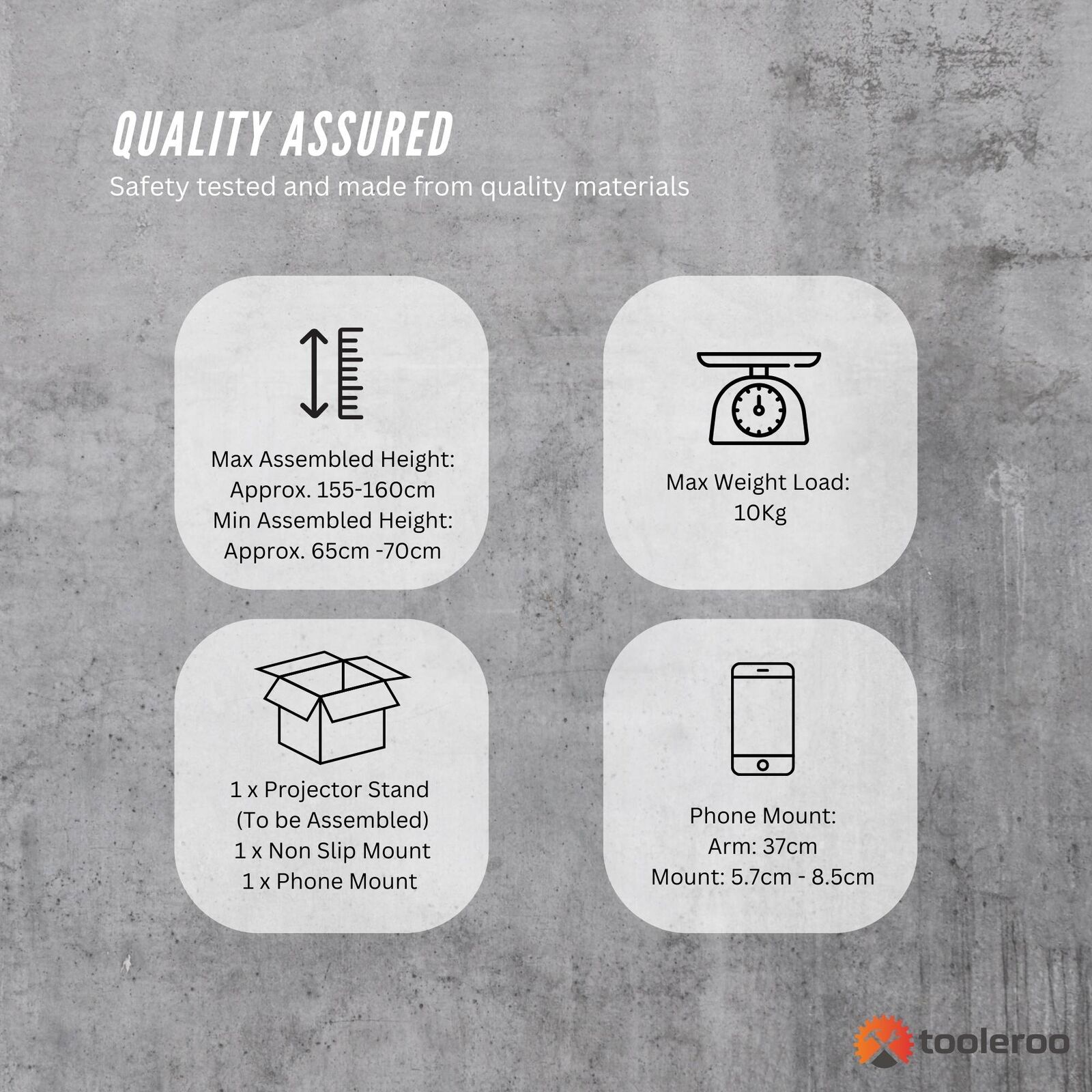 Your new go-to gadget: our sturdy, adjustable projector laptop tripod stand! This ultimate portable accessory is perfect for today's dynamic professional. With a solid tripod base and a flat, tilt-adjustable tray, it’s ideal for holding your projector, laptop, studio monitor, or even doubling as a music stand. The stand also features a gooseneck phone mount optimising versatility. Whether you're giving a presentation, enjoying a movie night, or rocking out in your studio, this stand has got you covered.