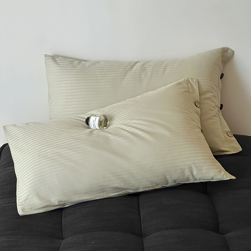 Experience the ultimate in sleep luxury with our Long Staple Cotton Sateen Pillowcase Set. Crafted from exquisite pure cotton sateen, these pillowcases boast a smooth, silky feel and a subtle jacquard stripe for added elegance. The long staple cotton ensures durability and breathability, while the meticulous craftsmanship provides lasting comfort. Treat yourself to a blissful night's rest with these premium pillowcases.