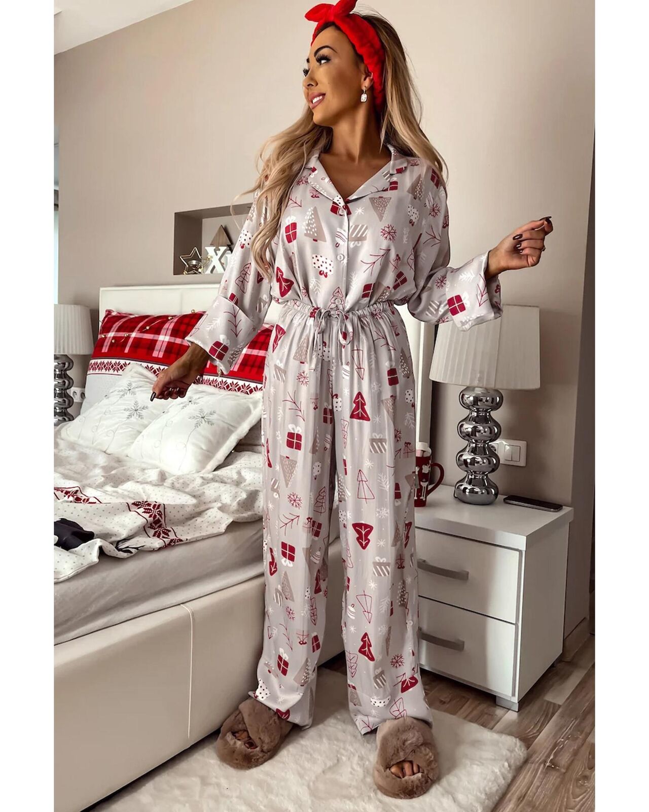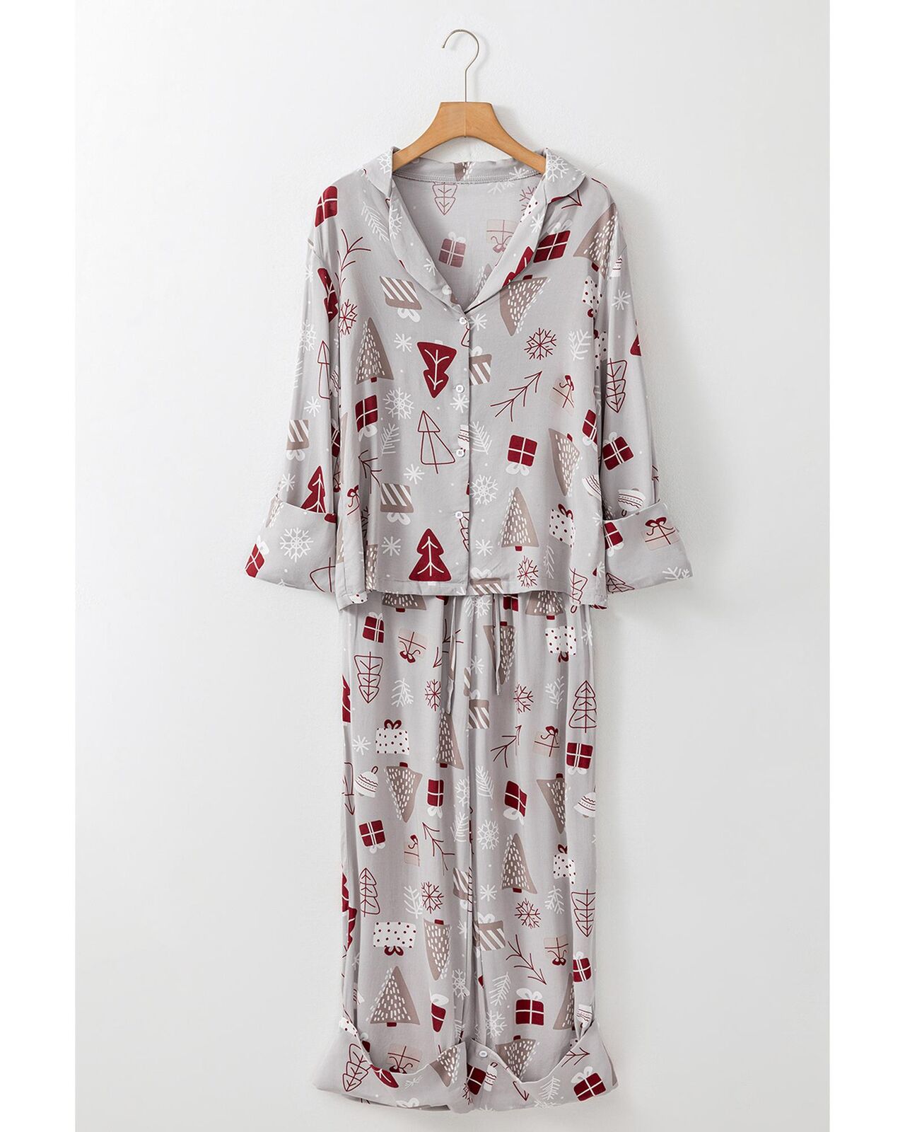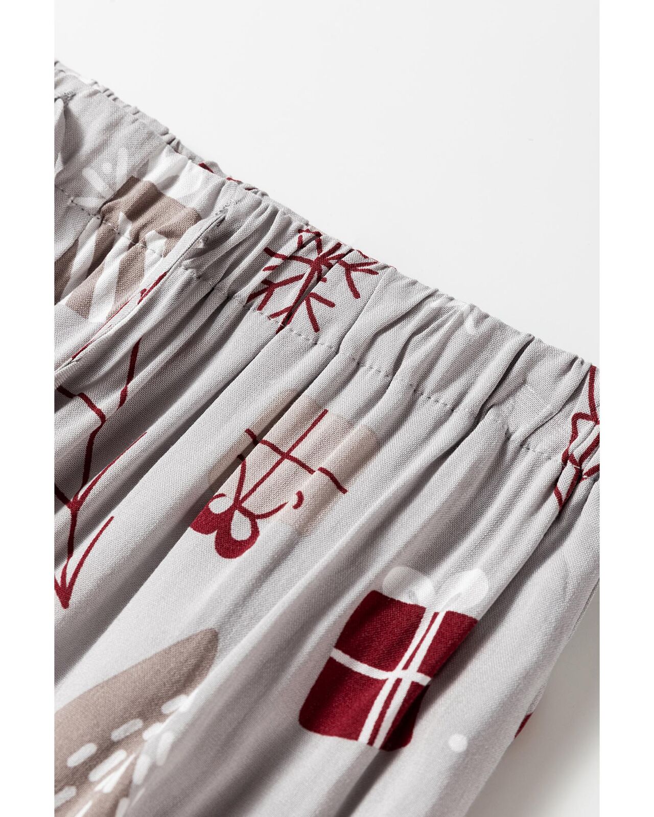 • Light Grey Christmas Printed Shirt and Pants Pajama Set