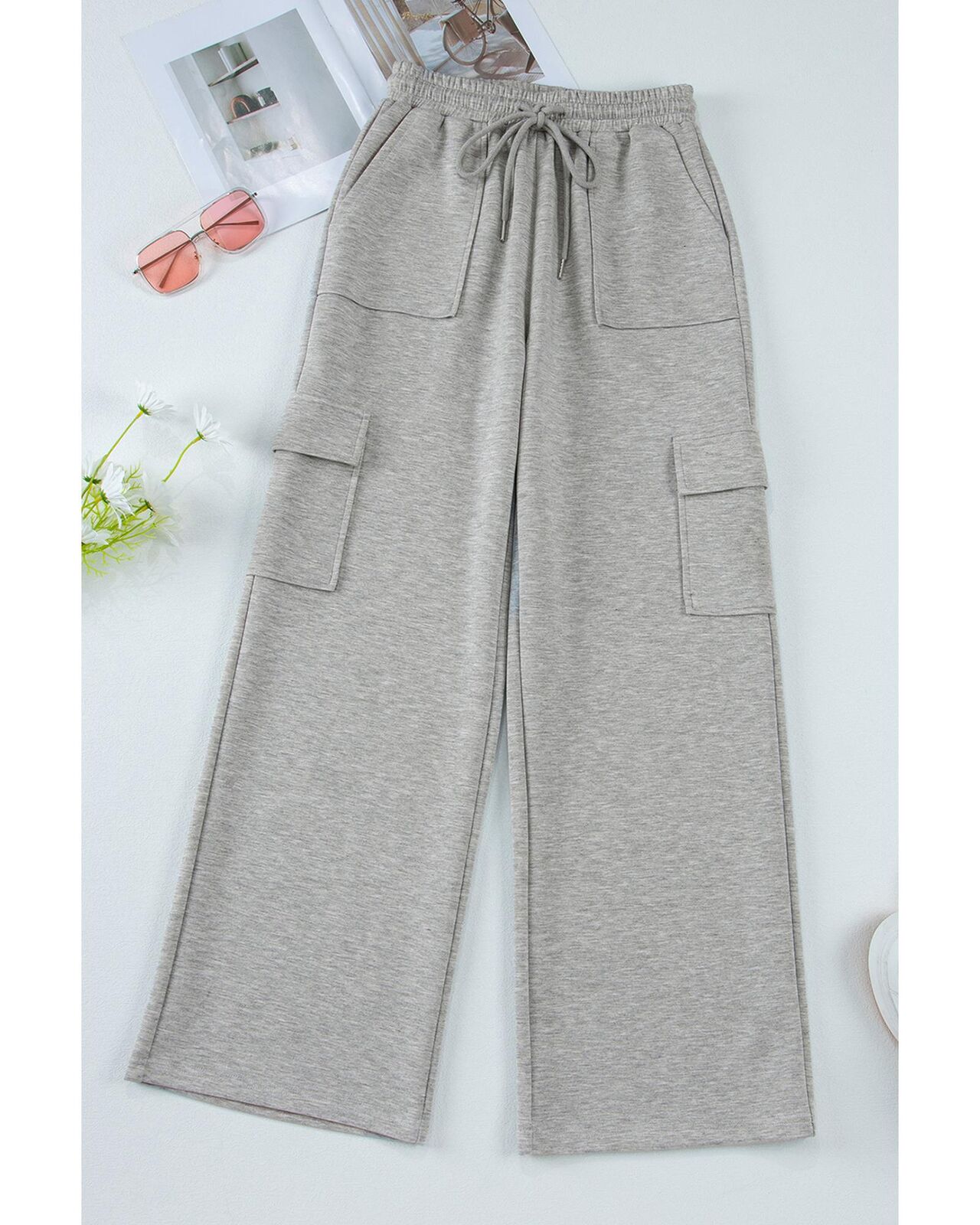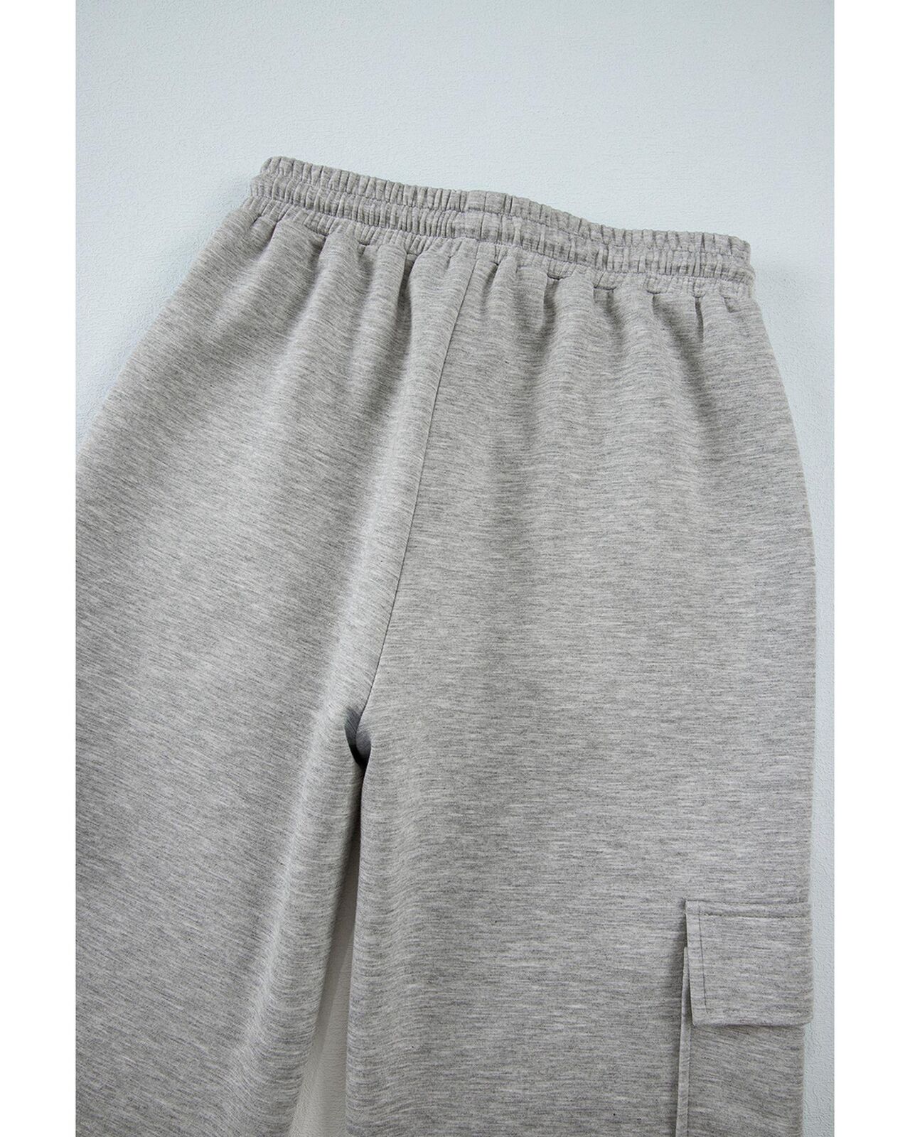 • Light grey workout pants with multiple pockets