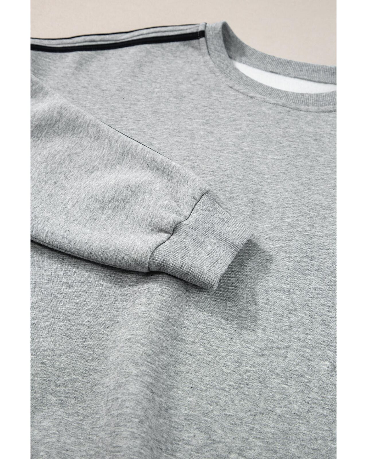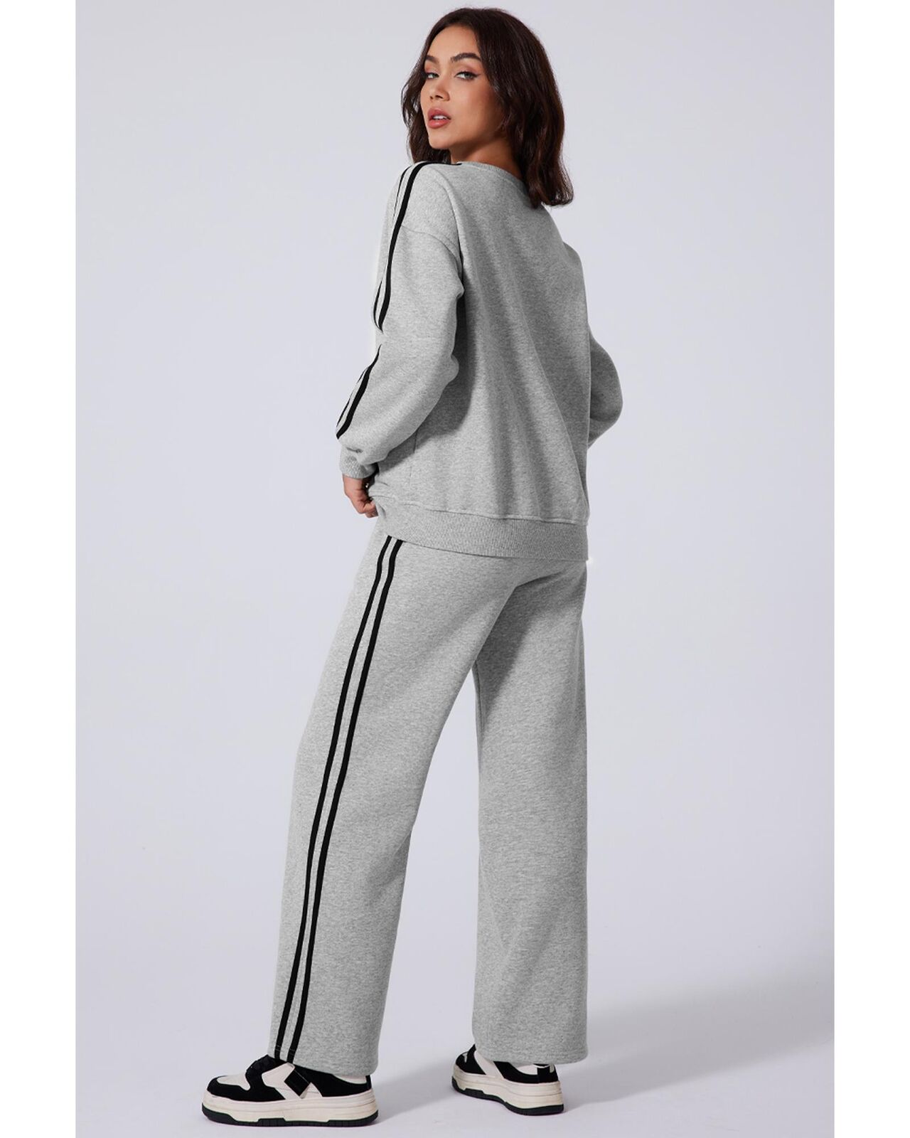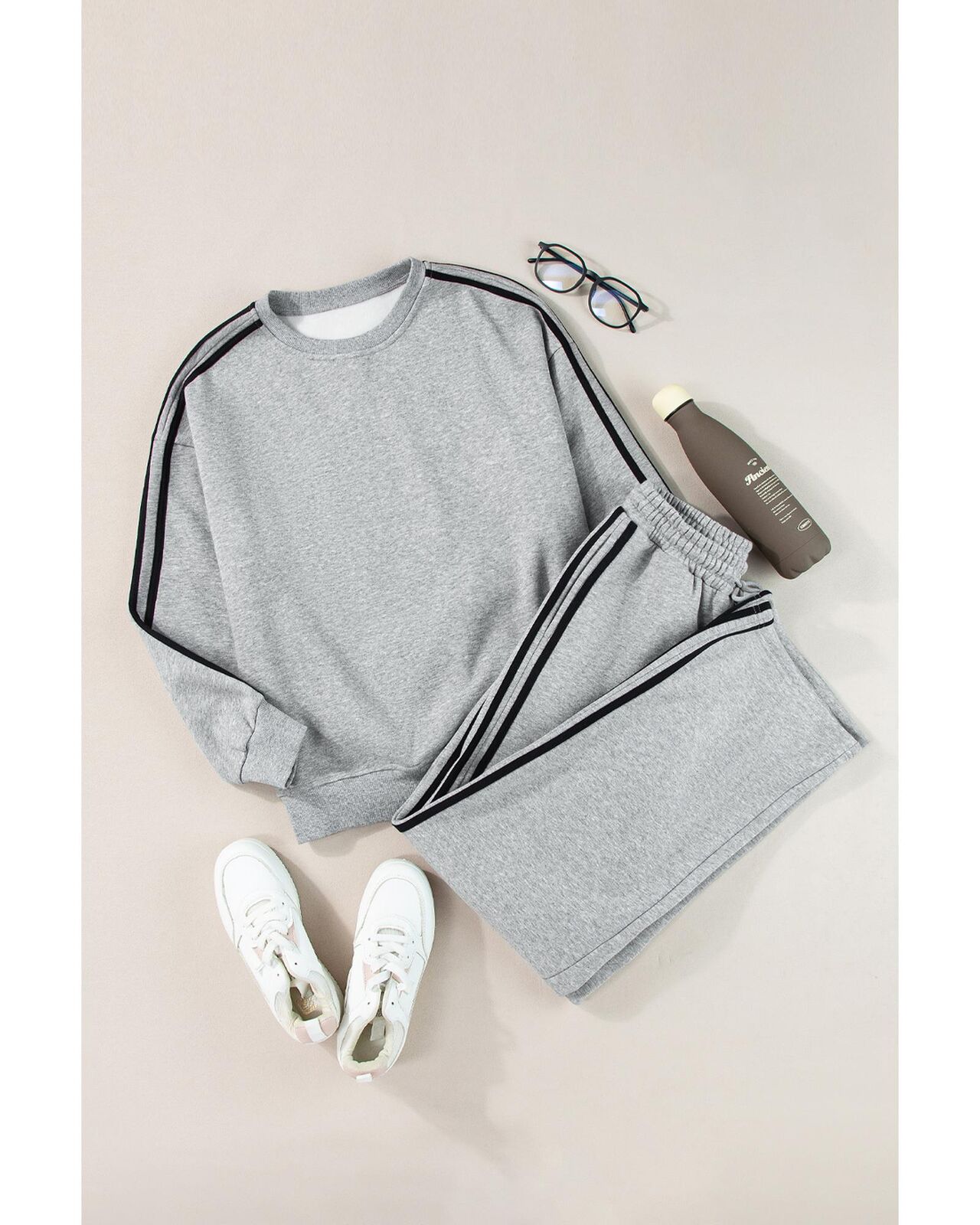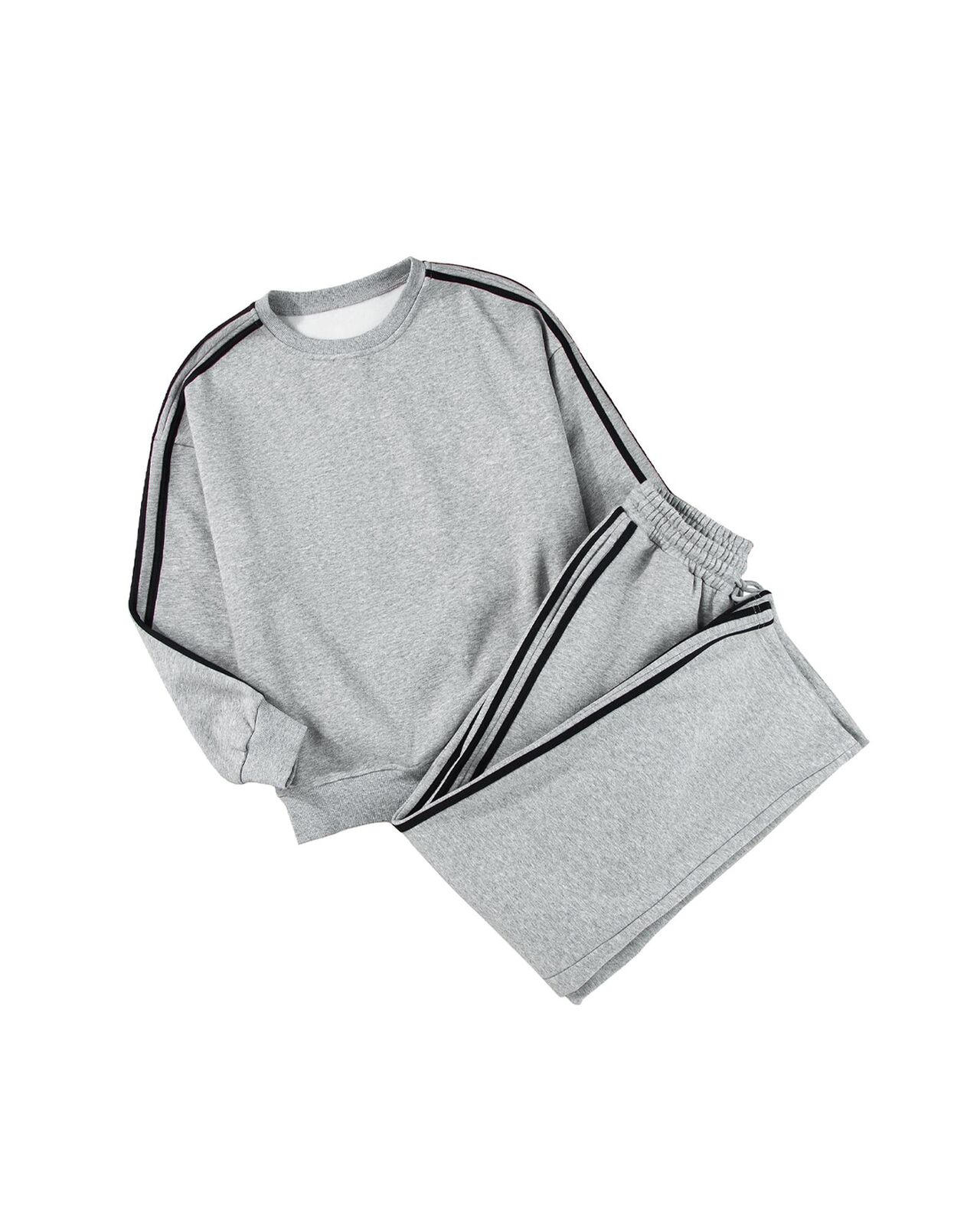 • Light Grey Solid Color Side Striped Sweatshirt Active Set