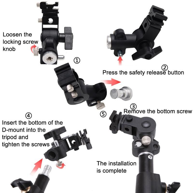 • Made of metal with adjustable screws for different standard flashes