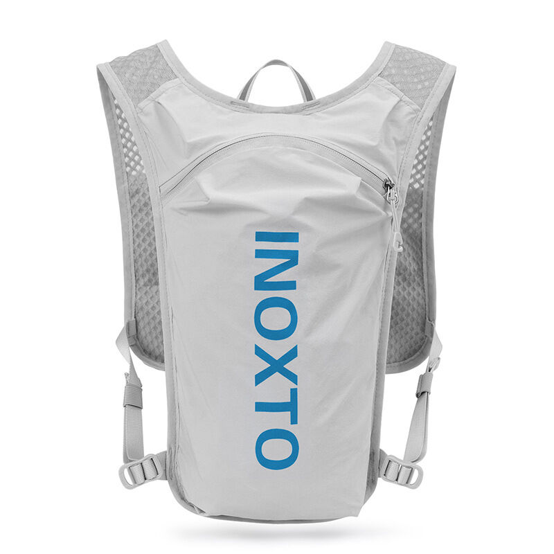 Lightweight Hydration Running Vest with 5L Capacity and Reflective Strips, Gray backpack with Blue text