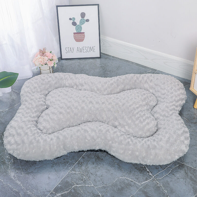 M Grey Rose Velvet Fish Scale Pet Bed - Creative Bone-Shaped Soft and Cozy Dog & Cat Nest