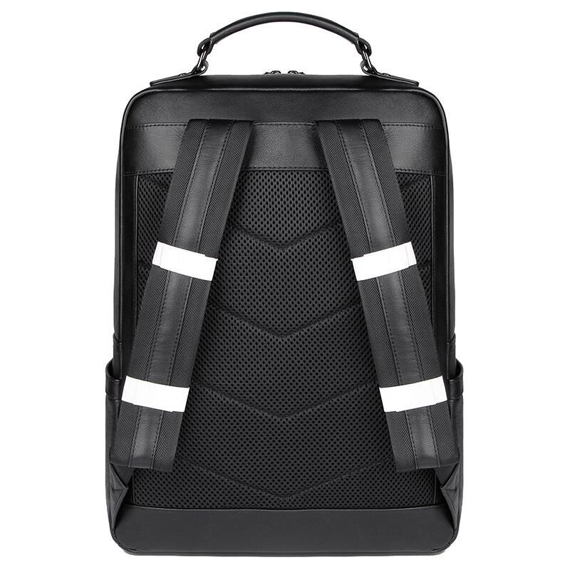 Men Black Cowhide Leather Backpack for Casual Business with Laptop Compartment